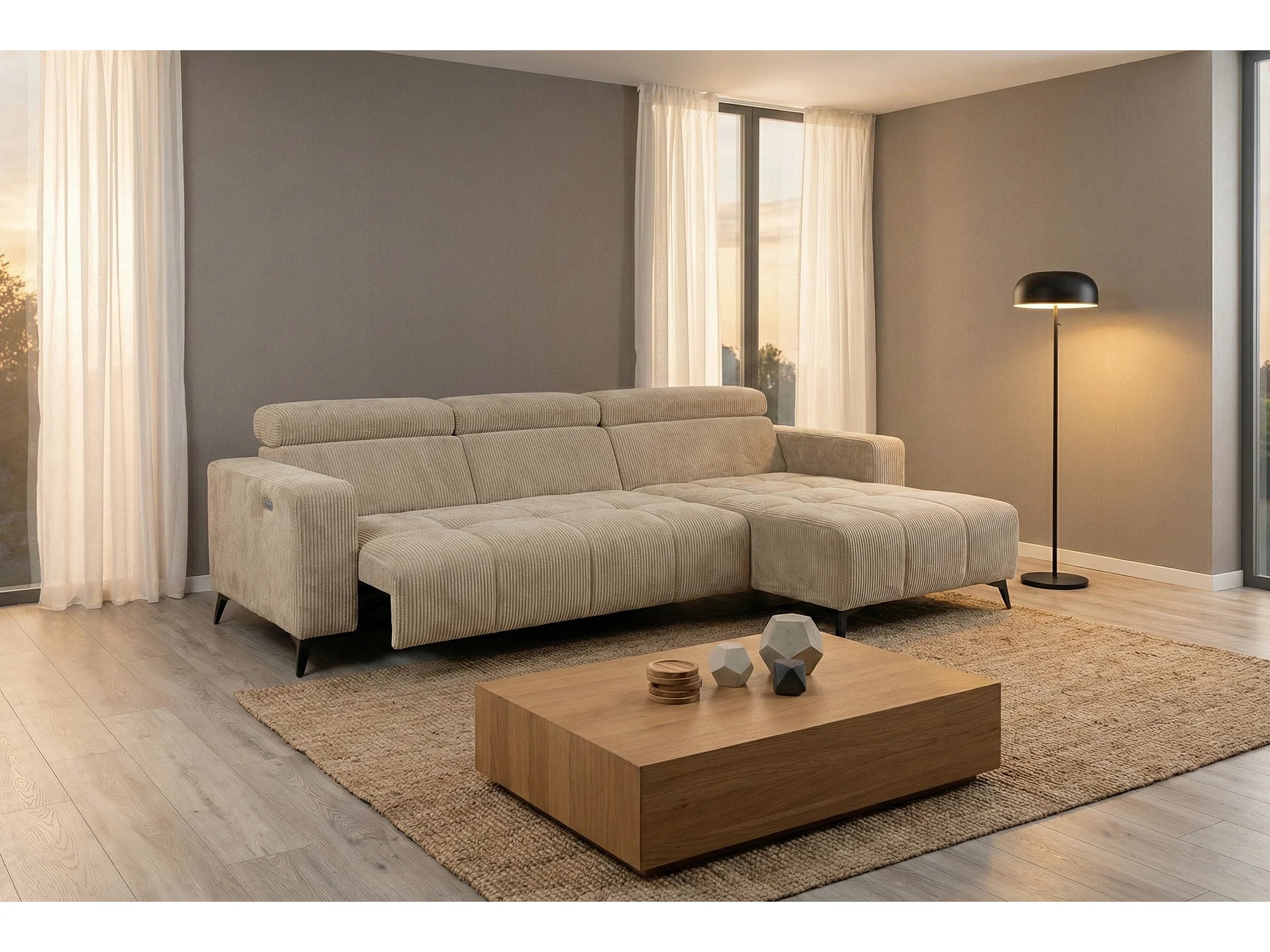 Nicolette - Canapé d’angle moderne avec fonction relax électrique