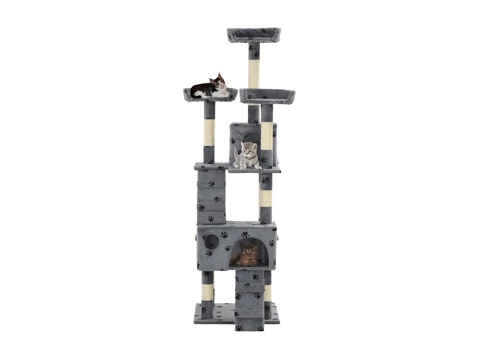 Nidrik Arbre à chat et griffoirs Sisal 170cm Empreintes de pattes Gris