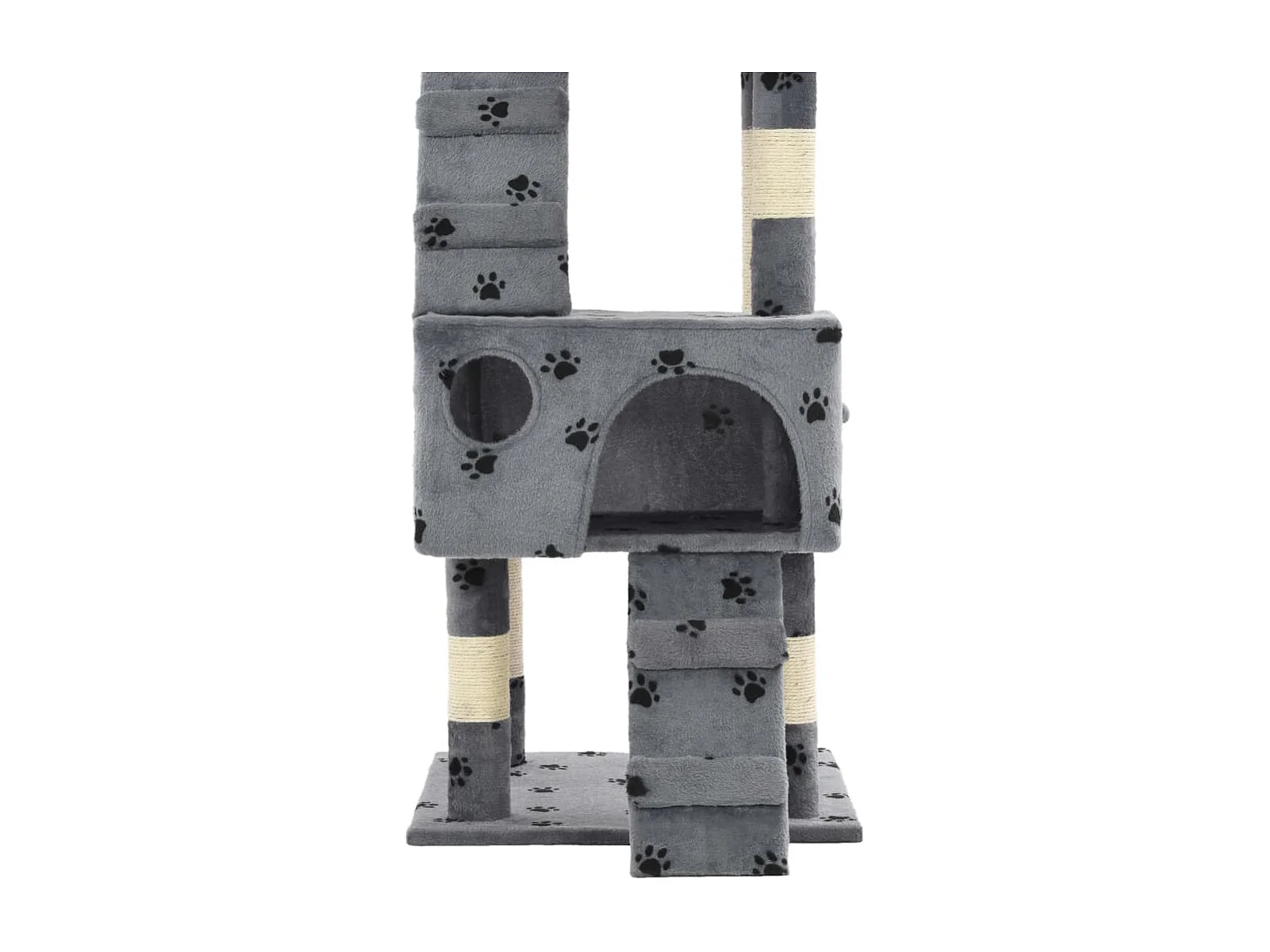 Elvren Arbre à chat et griffoir Sisal 105 cm Empreintes de pattes Gris