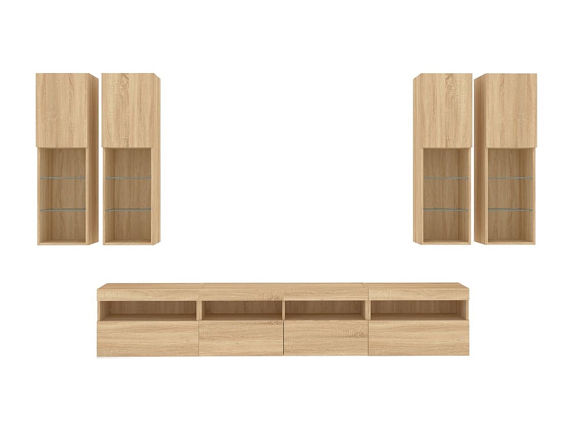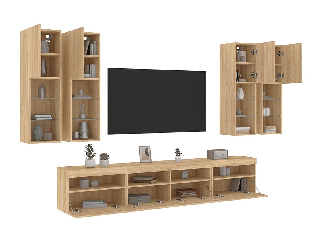 Niklas Ensemble de meubles TV muraux 7pcs et lumières LED chêne sonoma