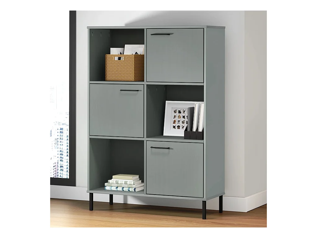 Nilvar Bibliothèque avec pieds en métal Gris 90x35x128,5 cm Bois OSLO