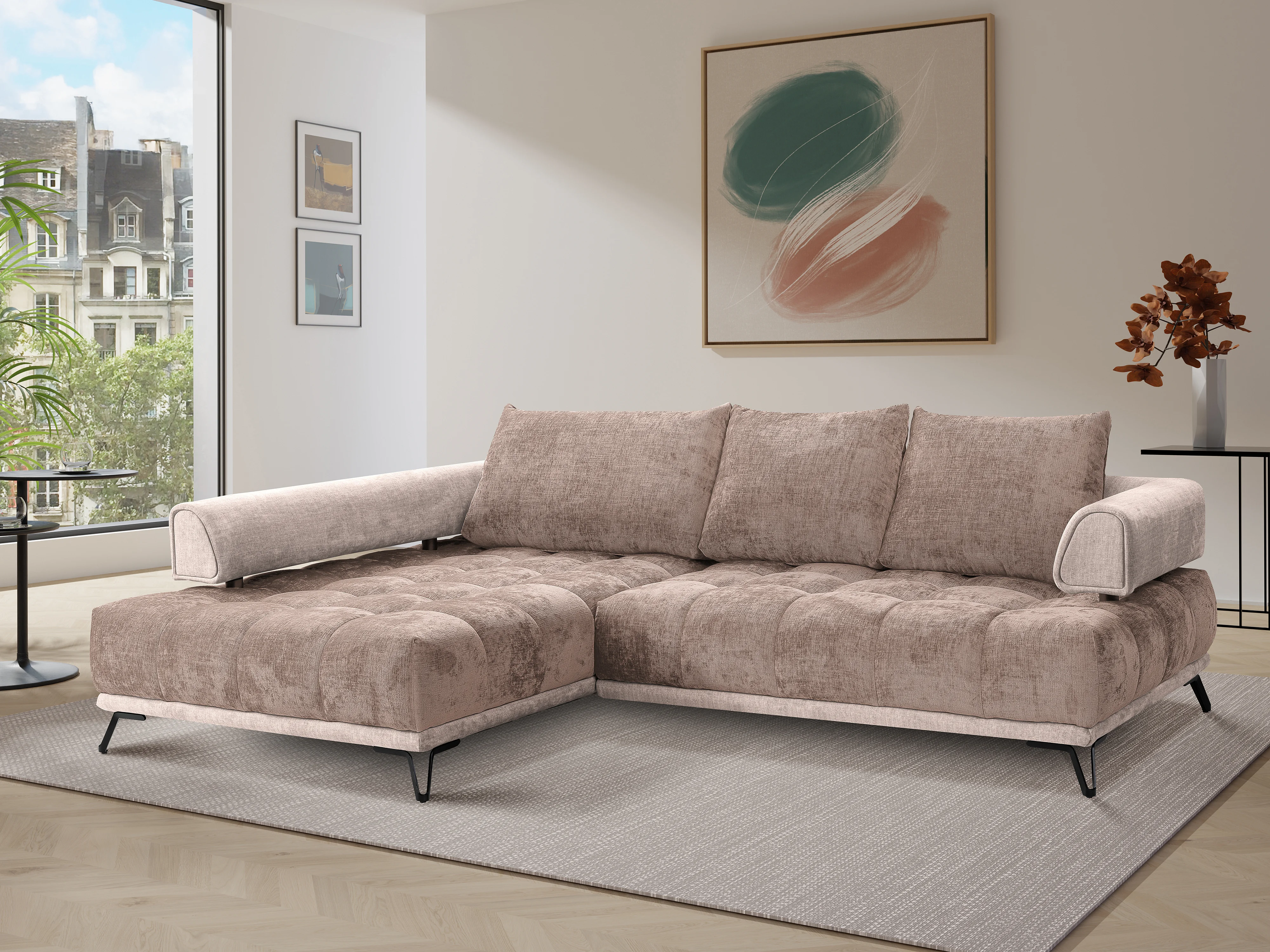 Canapé d'angle gauche en tissu chenille et velours taupe NIVORIA