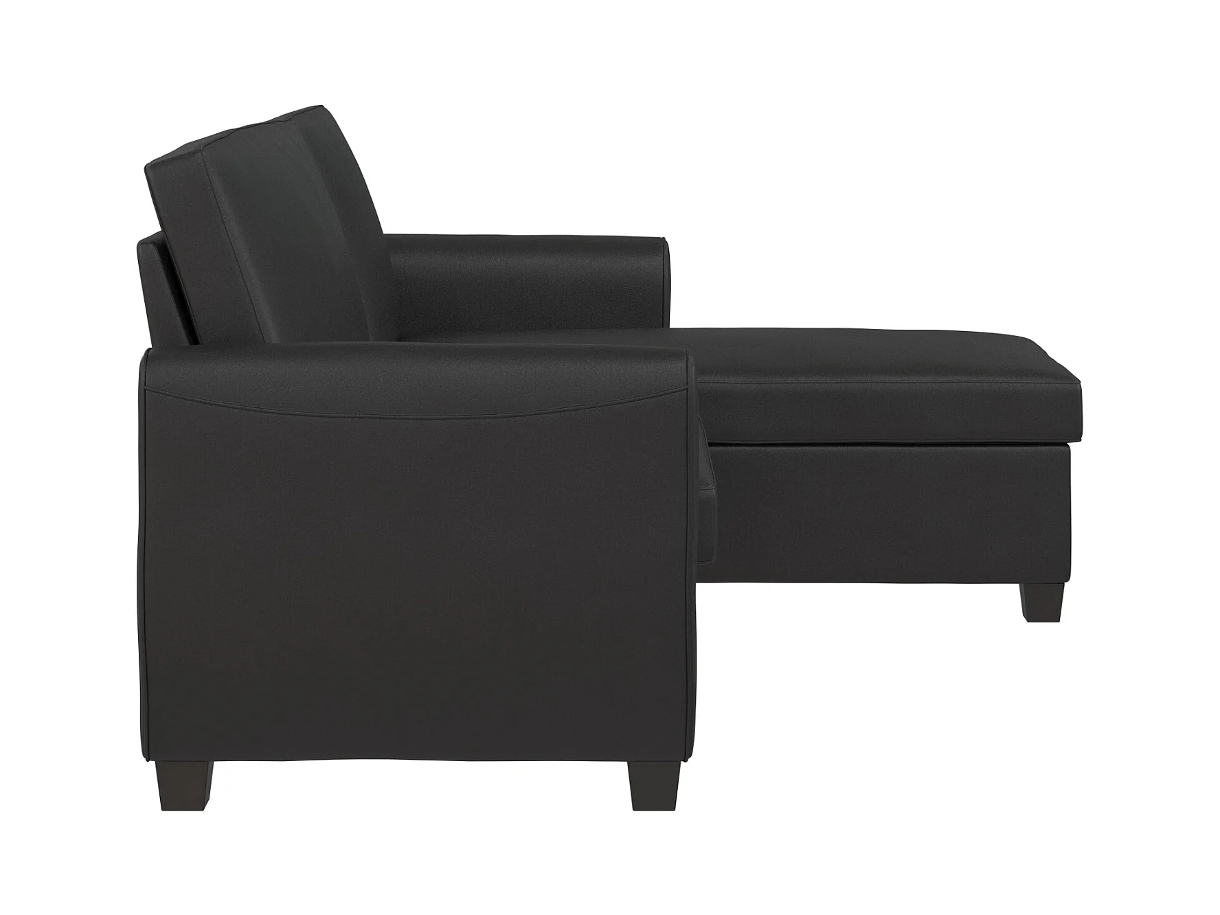 Noah | Canapé convertible 3 places avec chaise longue en simili cuir Noir