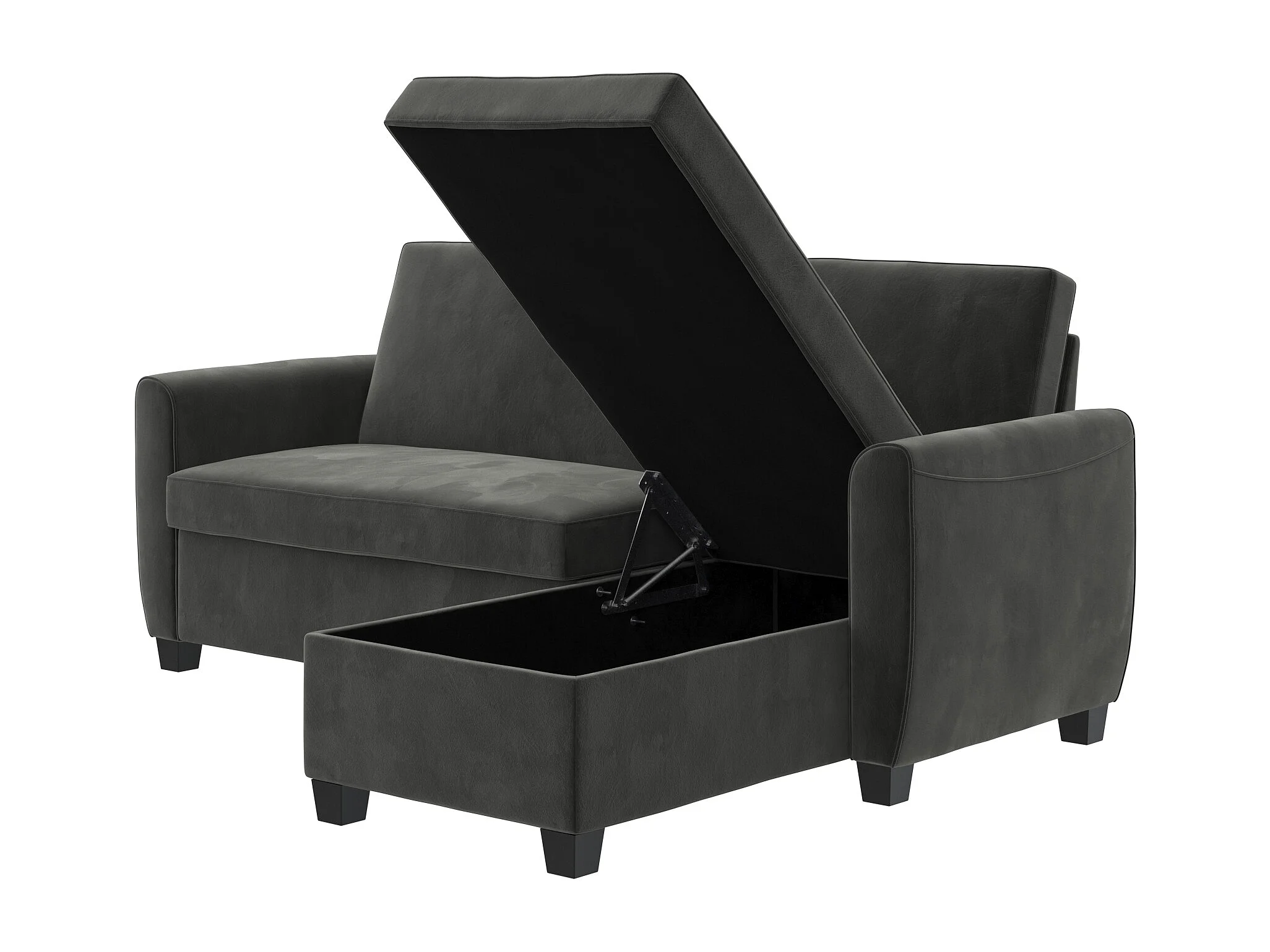 Noah | Canapé-lit 3 places avec chaise longue en gris velours