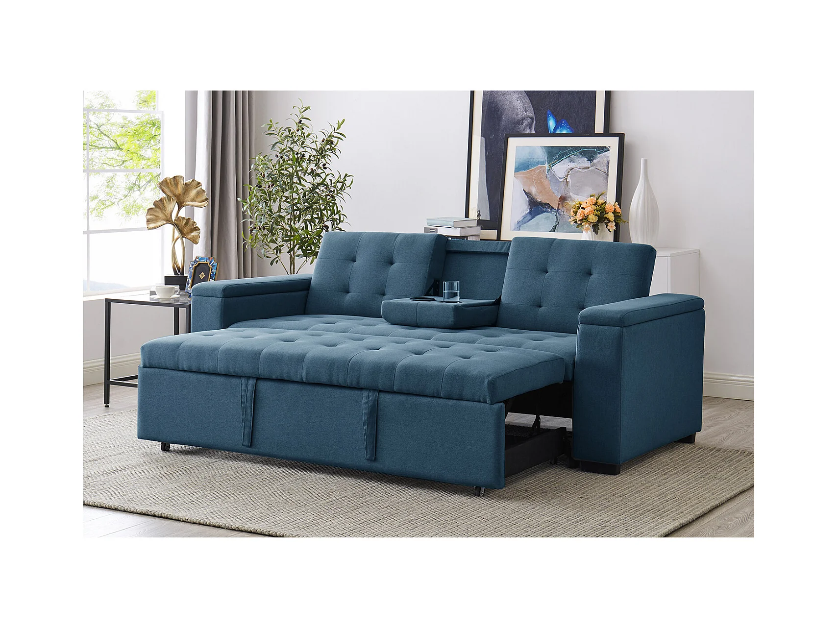 Canapé convertible droit bleu
