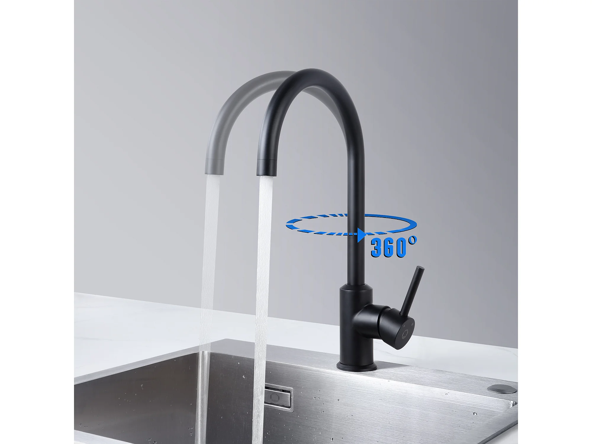 NETTLIFE robinet de cuisine robinet haute pression robinet d'évier de cuisine en acier inoxydable pivotant à 360°