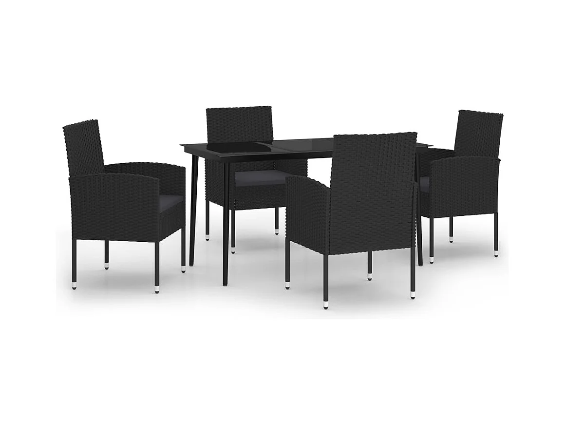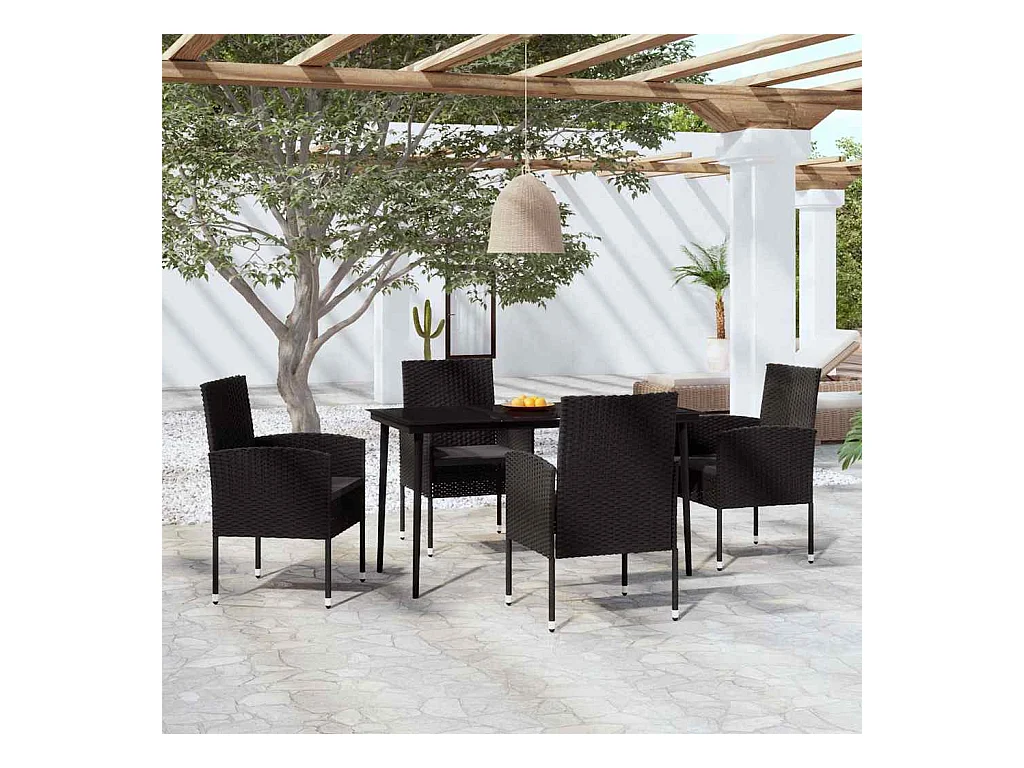 Ayisha Ensemble à manger de jardin 5 pcs Noir Rotin PVC