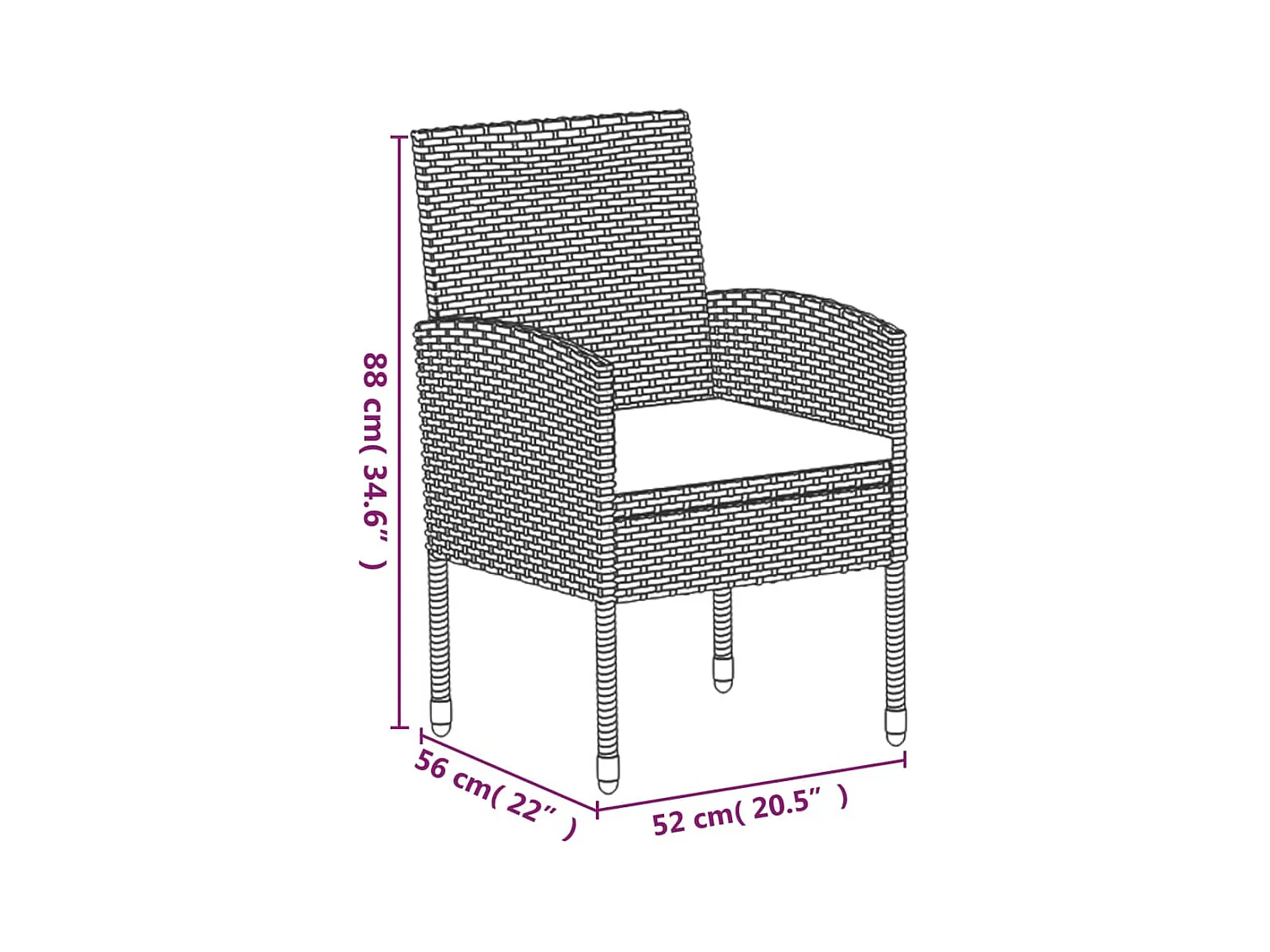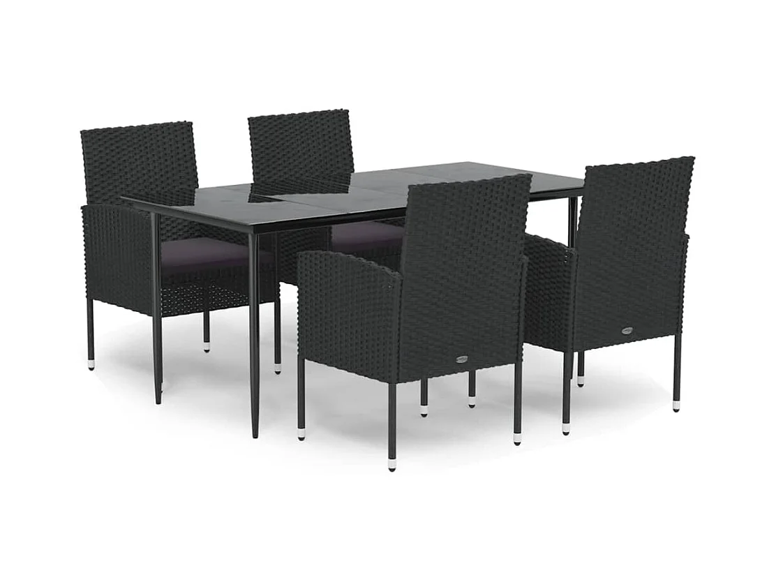 Lara Ensemble à manger de jardin coussins 5pcs Noir Résine tressée