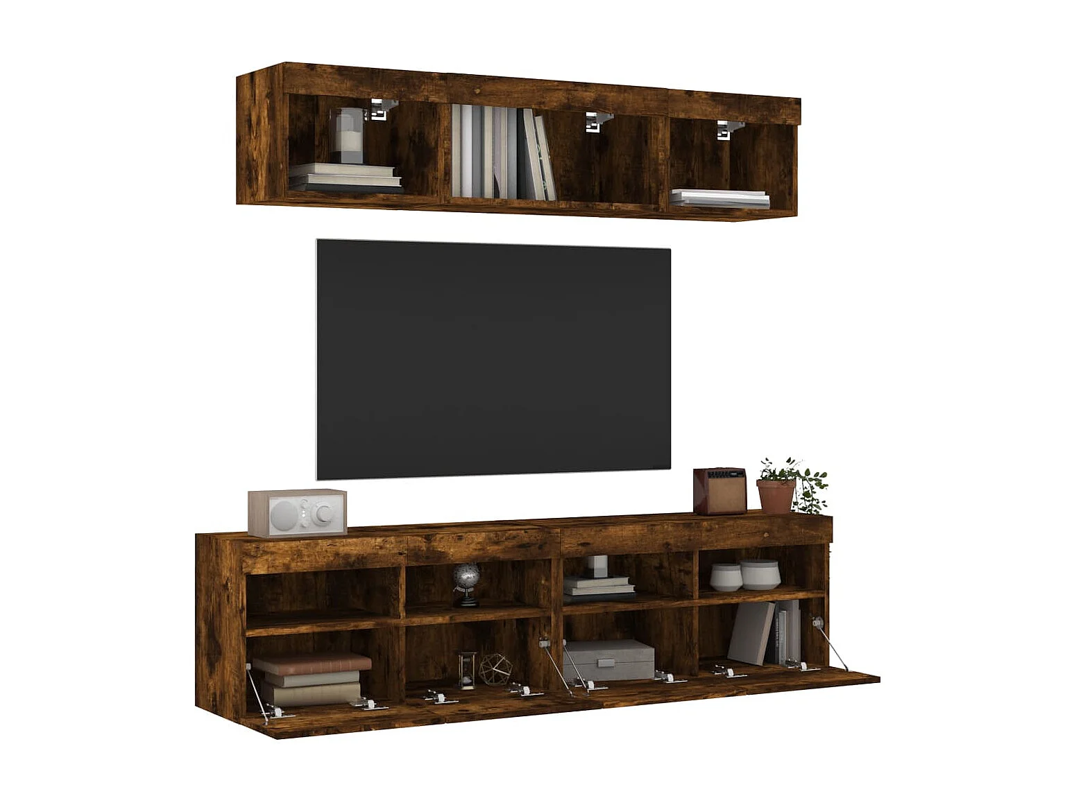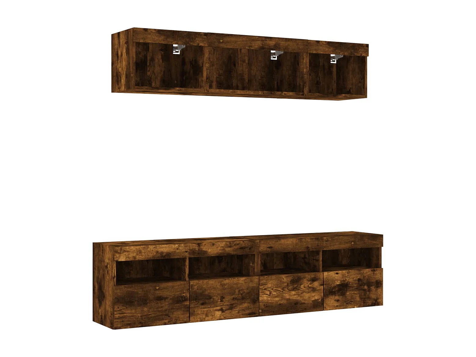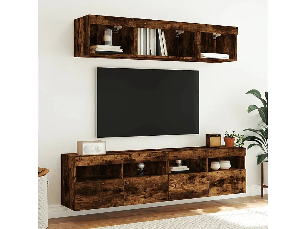 Nourdin Unités murales TV avec LED 5 pcs chêne fumé bois d'ingénierie