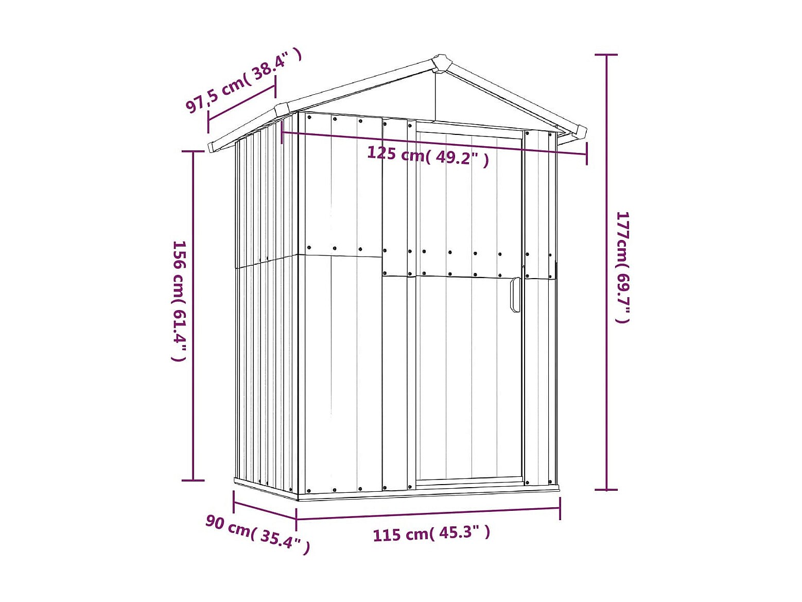 Nysse Abri de jardin Gris 126x97,5x177 cm Acier galvanisé