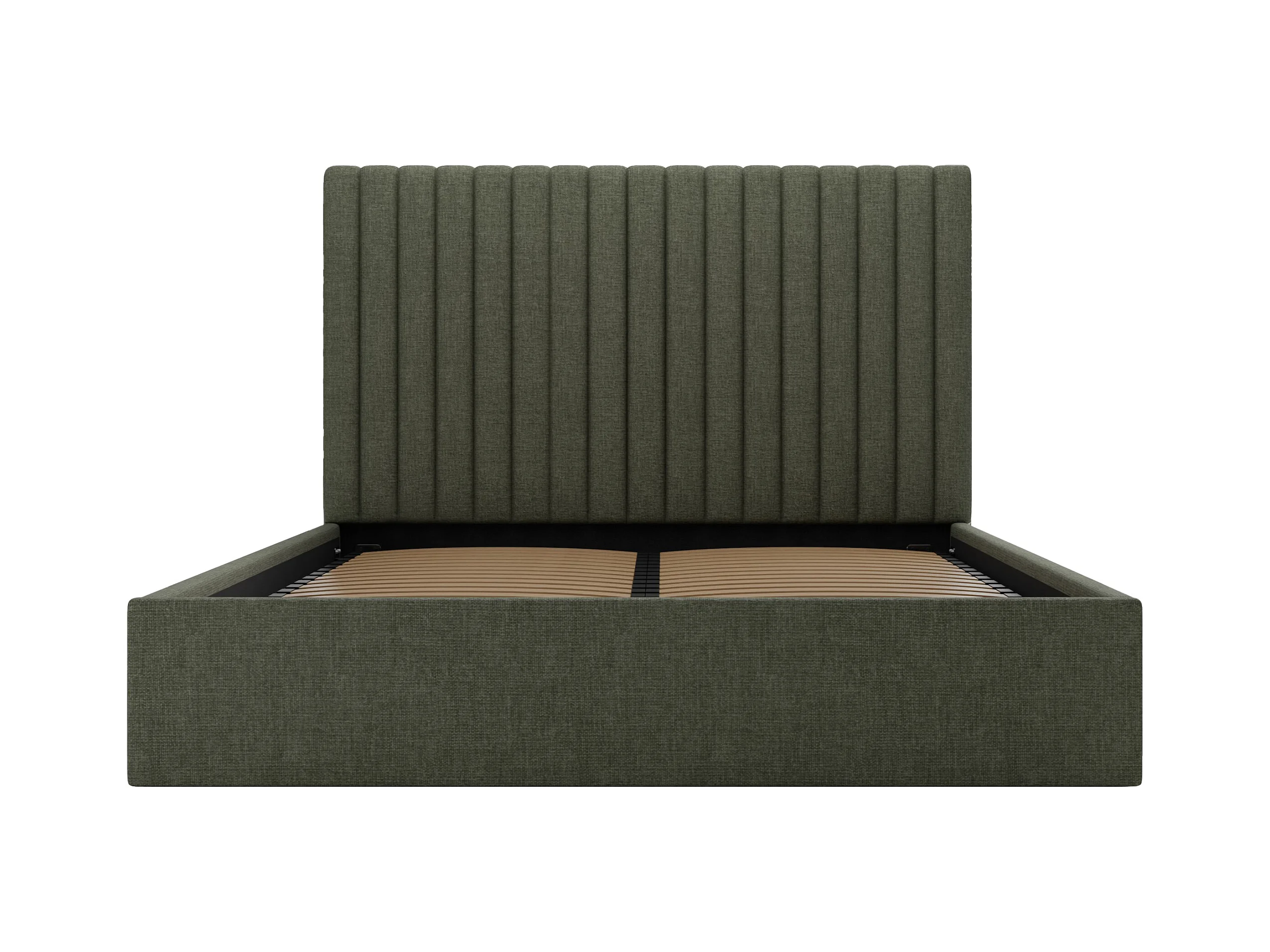 Lit coffre 180 x 200 cm avec tête de lit coutures verticales - Tissu - Kaki - SARAH