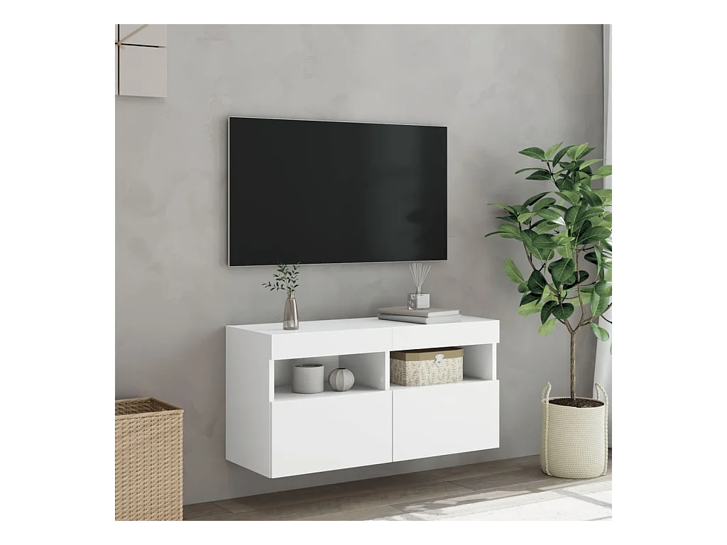 DuBois Meuble TV mural avec lumières LED blanc 98,5x30x60,5 cm
