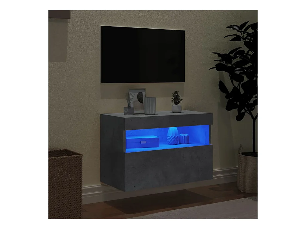 Gerben Meuble TV mural avec lumières LED gris béton 60x35x41 cm