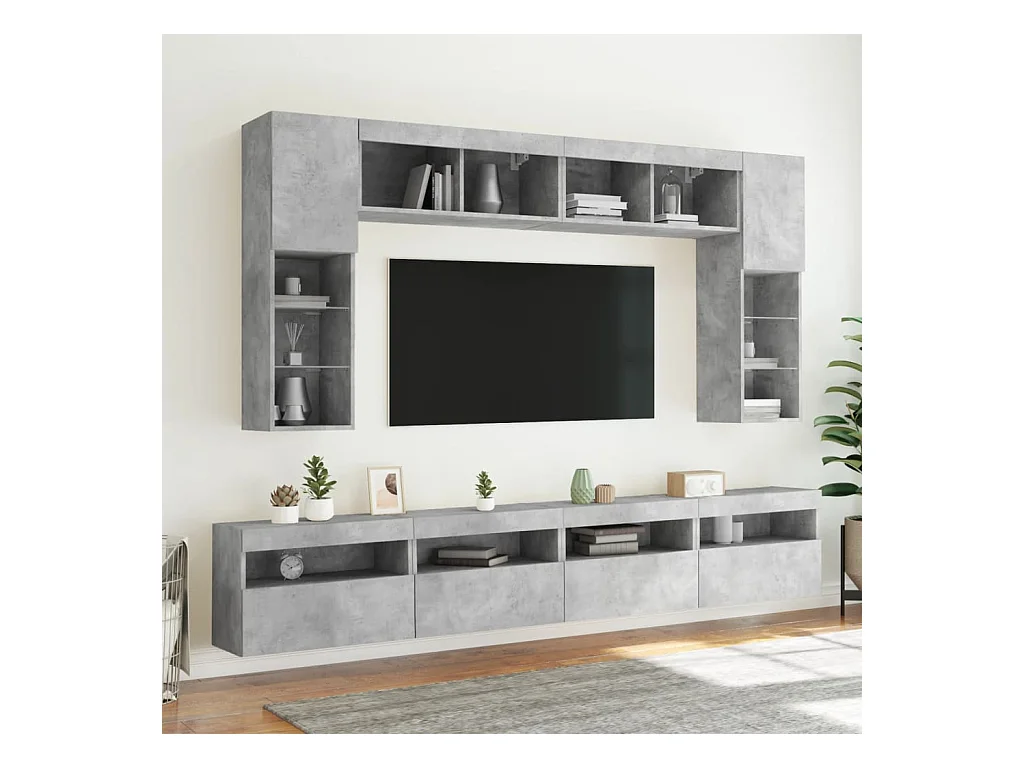 DuBois Meuble TV mural avec lumières LED gris béton 98,5x30x60,5 cm