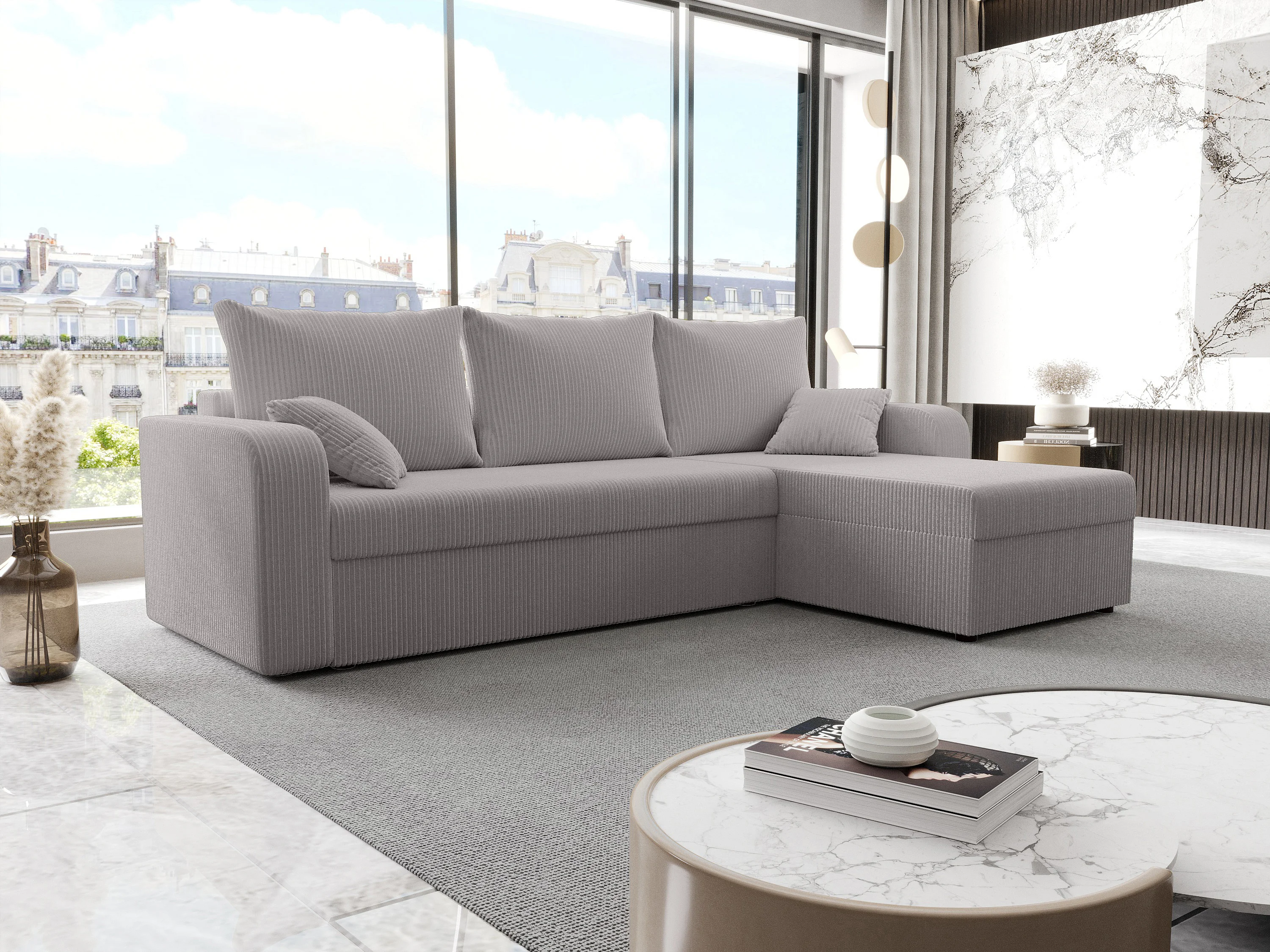Canapé d'angle convertible et réversible en velours côtelé gris clair ONABIA
