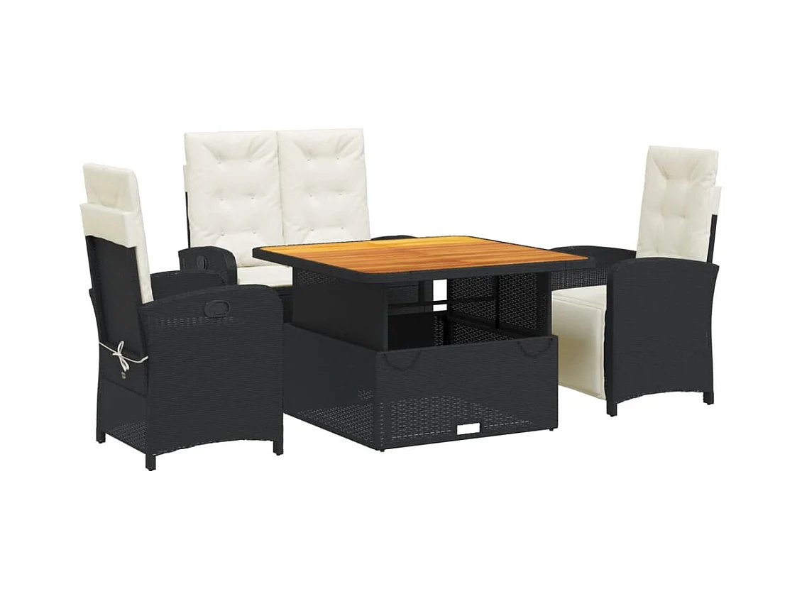 Isyra Ensemble à manger de jardin 4 pcs avec coussins noir