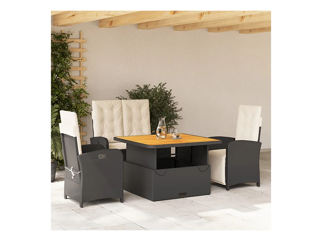 Onhaye Ensemble à manger de jardin 4 pcs avec coussins noir