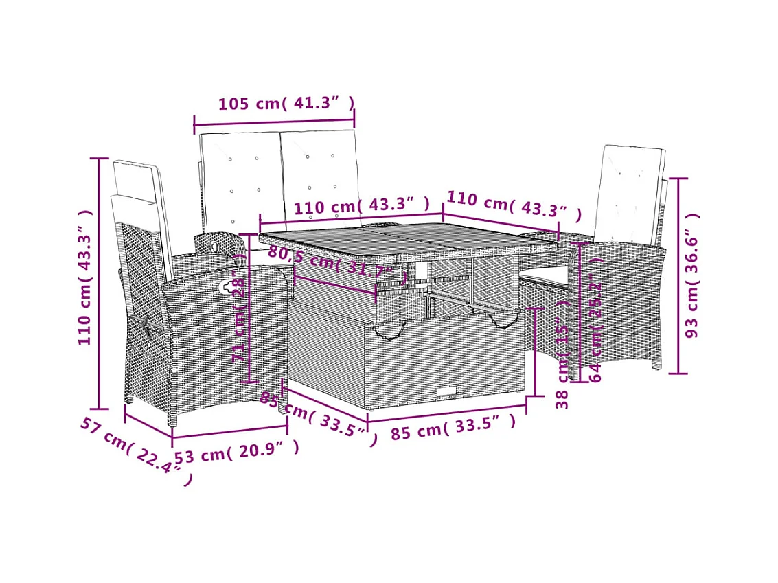Isyra Ensemble à manger de jardin coussins 2pcs noir résine tressée