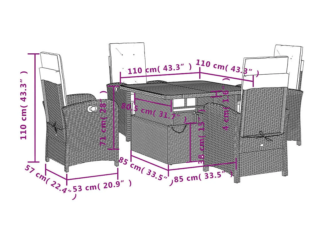 Coleville Ensemble à manger de jardin coussins 5pcs Noir Résine tressée