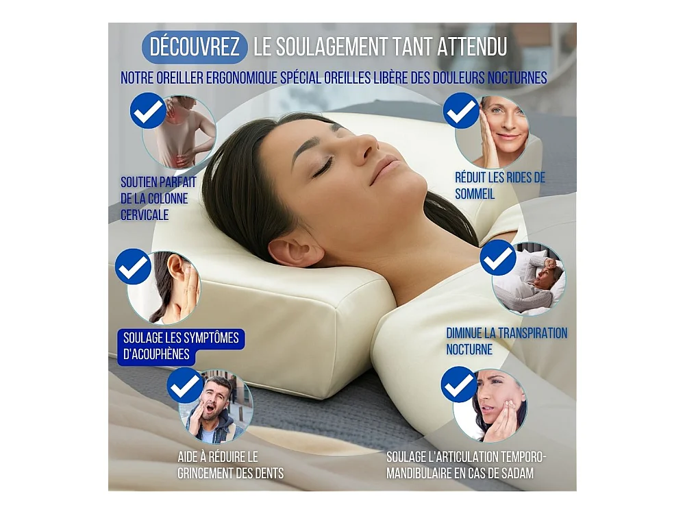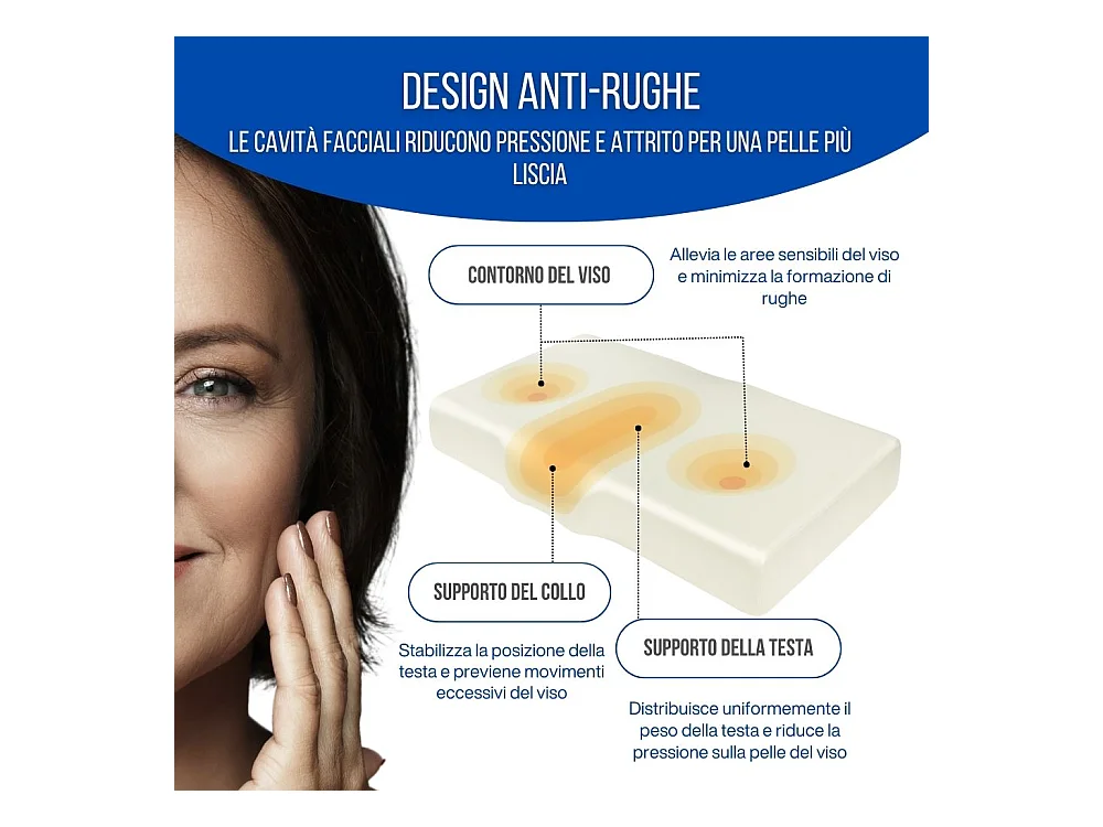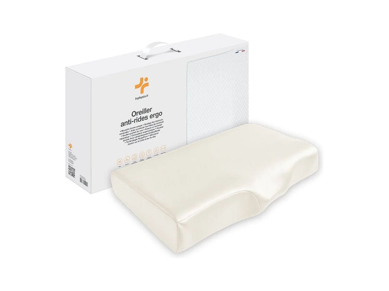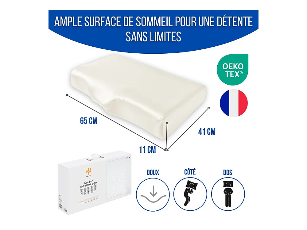 Oreiller Ergonomique Anti-Rides avec Taie d'Oreiller en Soie - Extra Grande - 65x42x10 - ERGO