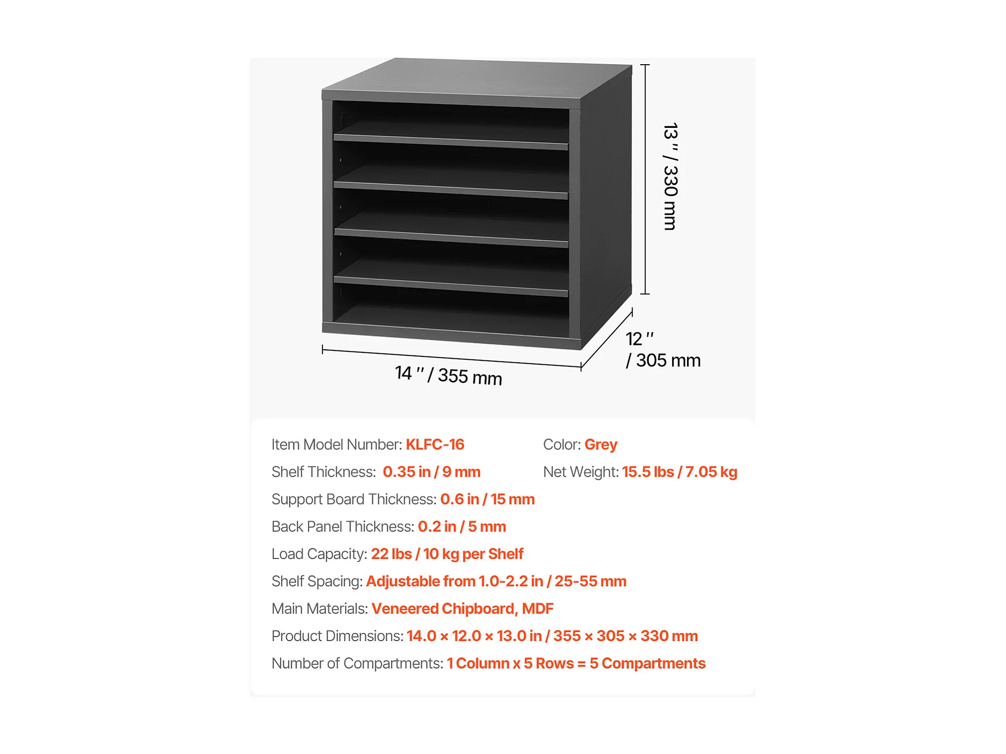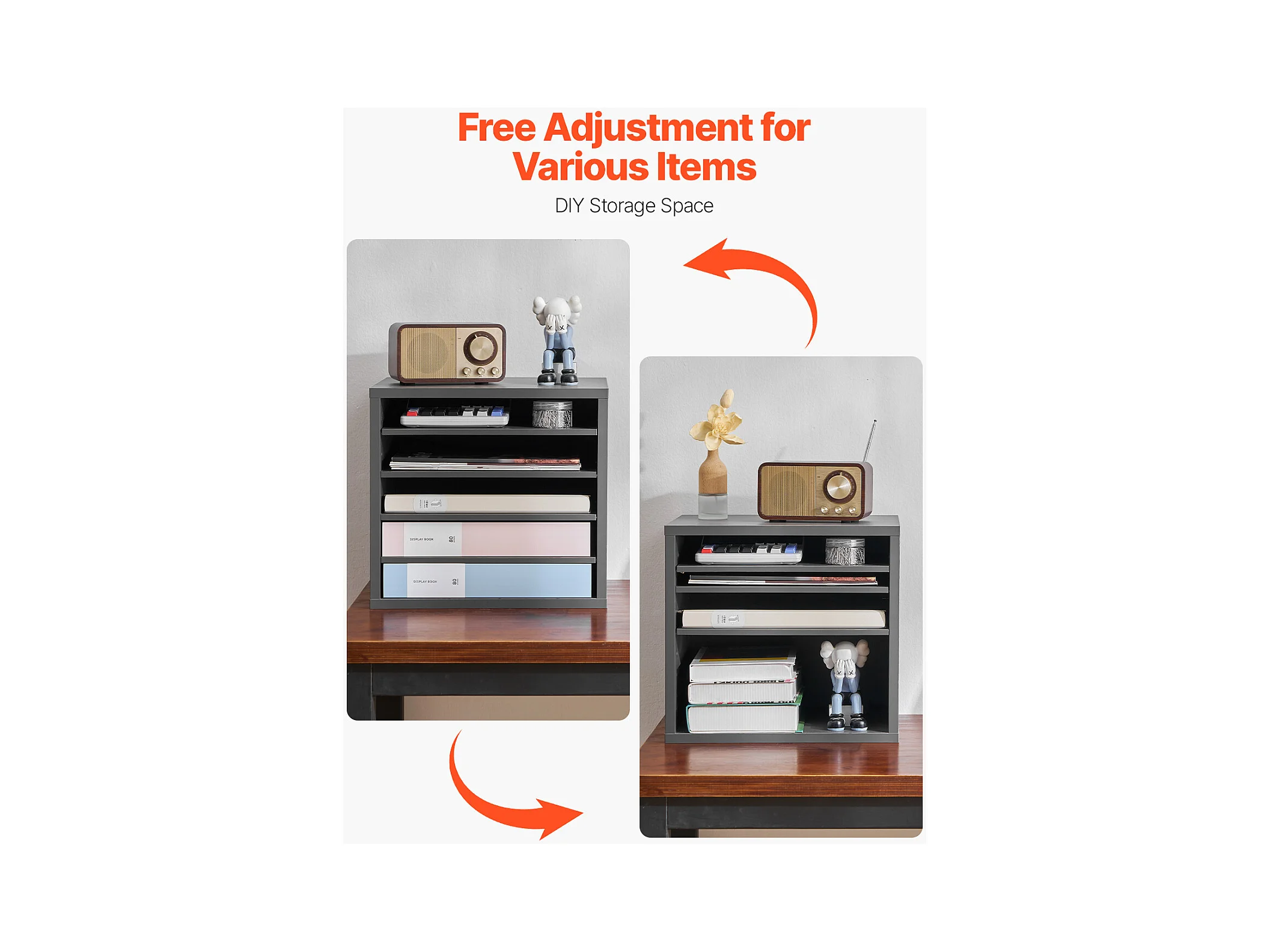 Organiseur de Bureau, SucceBuy Organiseur de Documents en Bois, 5 Compartiments, Étagères Réglables, Gris