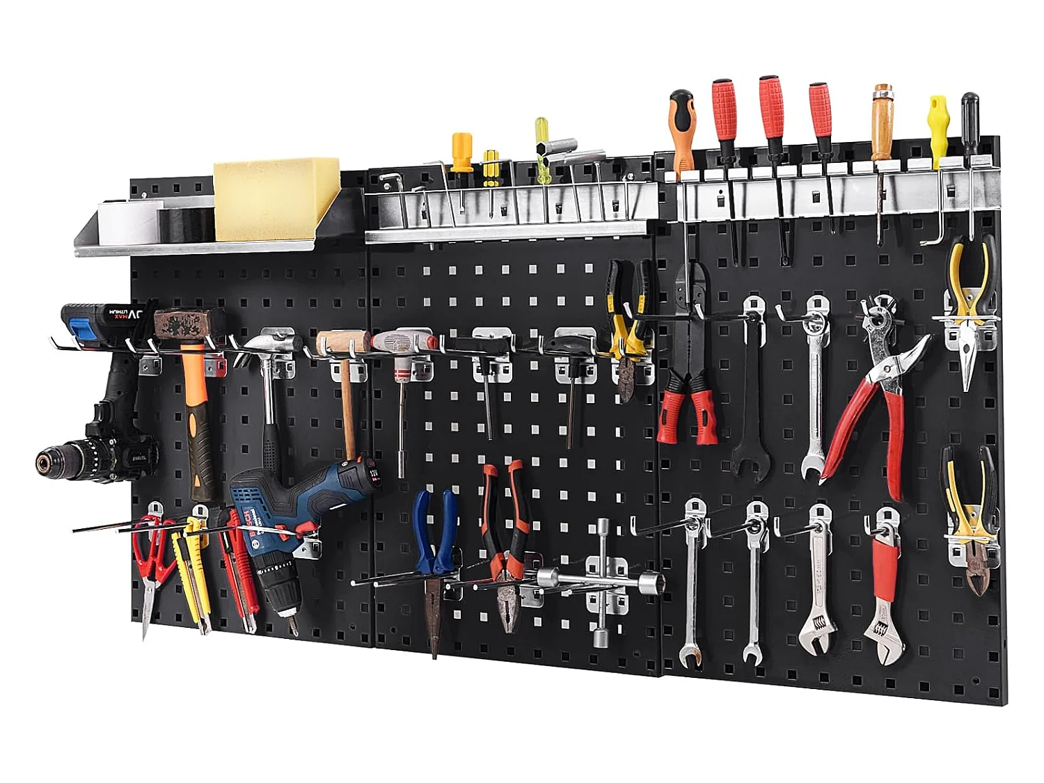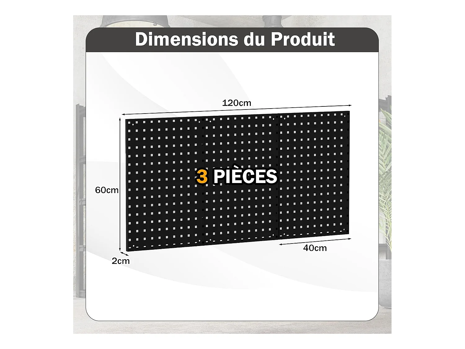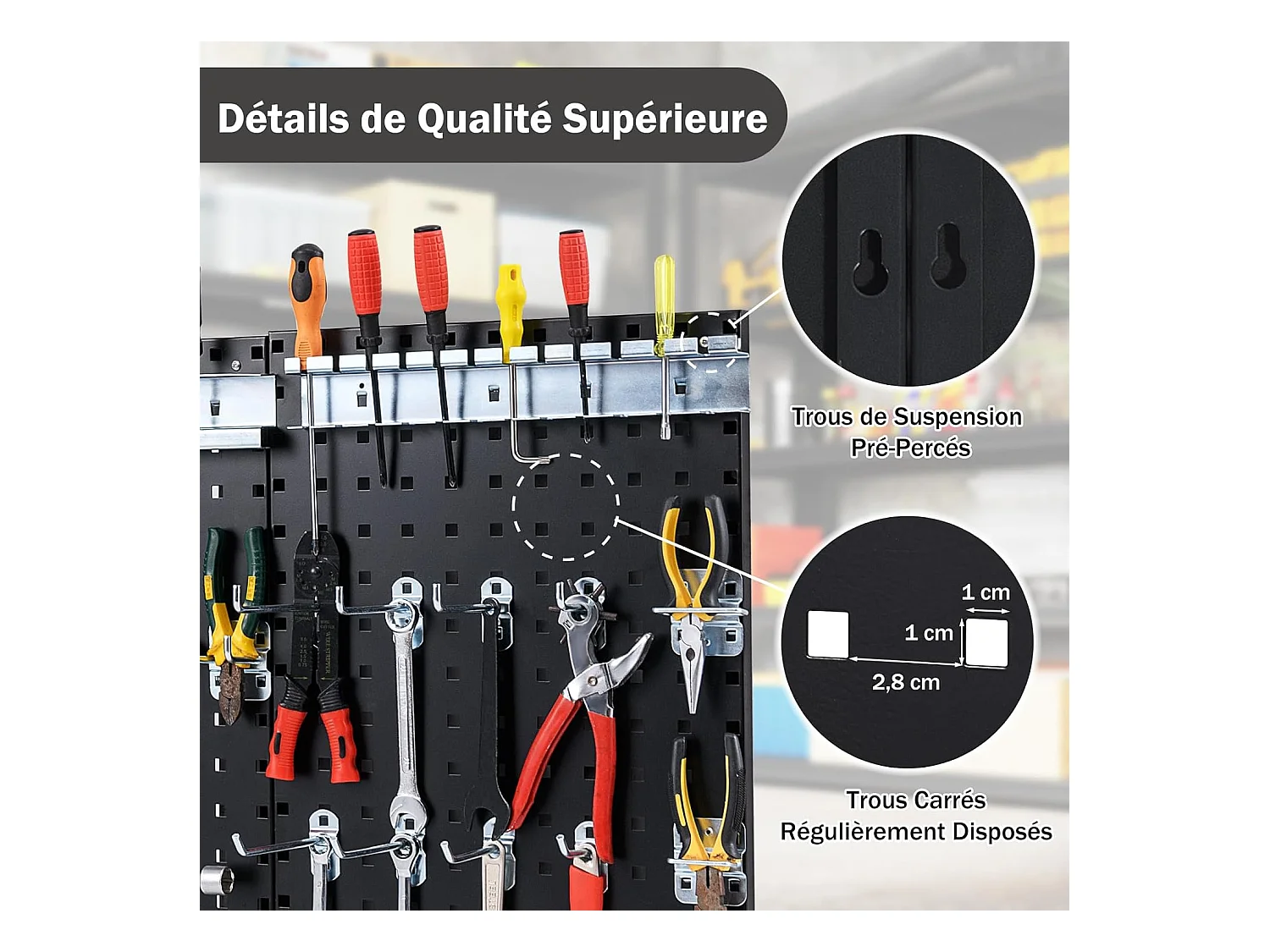 Organiseur Mural en Panneau Perforé, Kit de Rangement d'Outils en Métal avec 3 Panneaux Perforés 28 Accessoires de Suspension, Porte-outils Fixé au Mur (Noir)