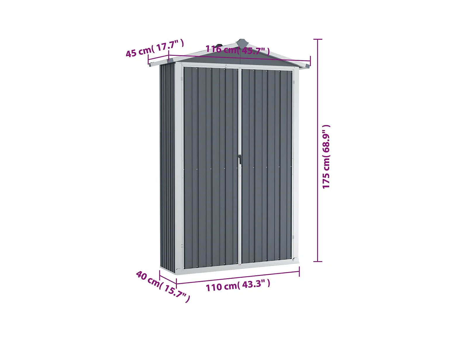 Orvault Abri de jardin Gris 116x45x175 cm Acier galvanisé