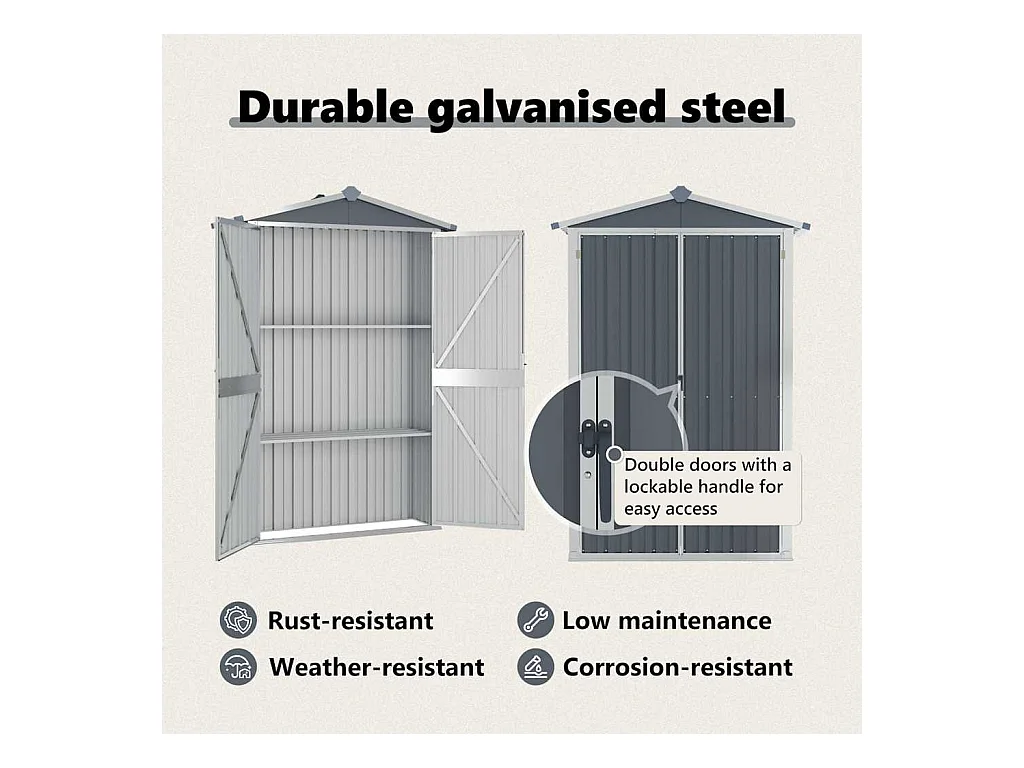 Nicole Abri à outils de jardin gris 88x89x161 cm acier galvanisé