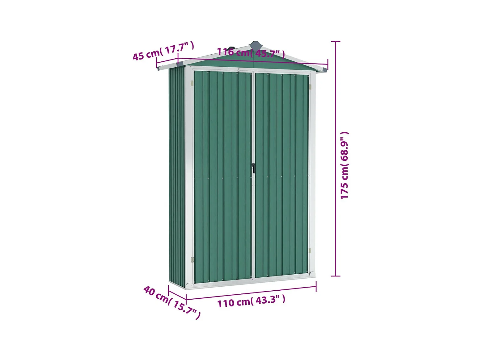 Orvault Abri de jardin Vert 116x45x175 cm Acier galvanisé