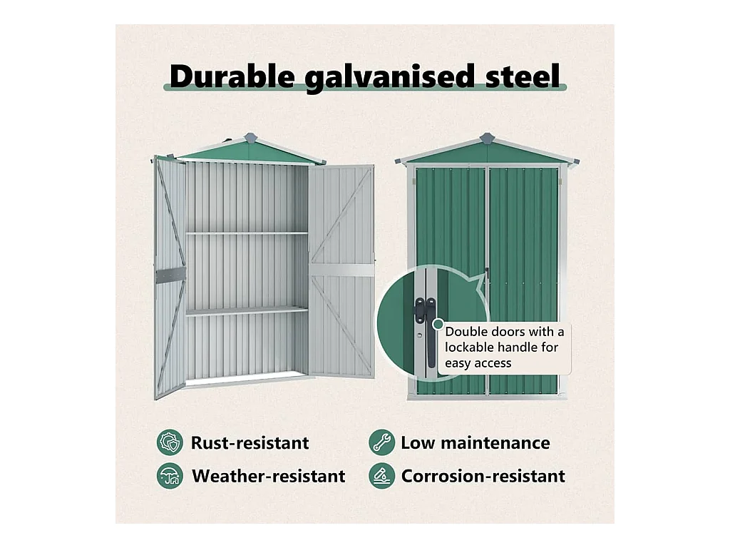 Nicole Abri à outils de jardin vert 88x89x161 cm acier galvanisé
