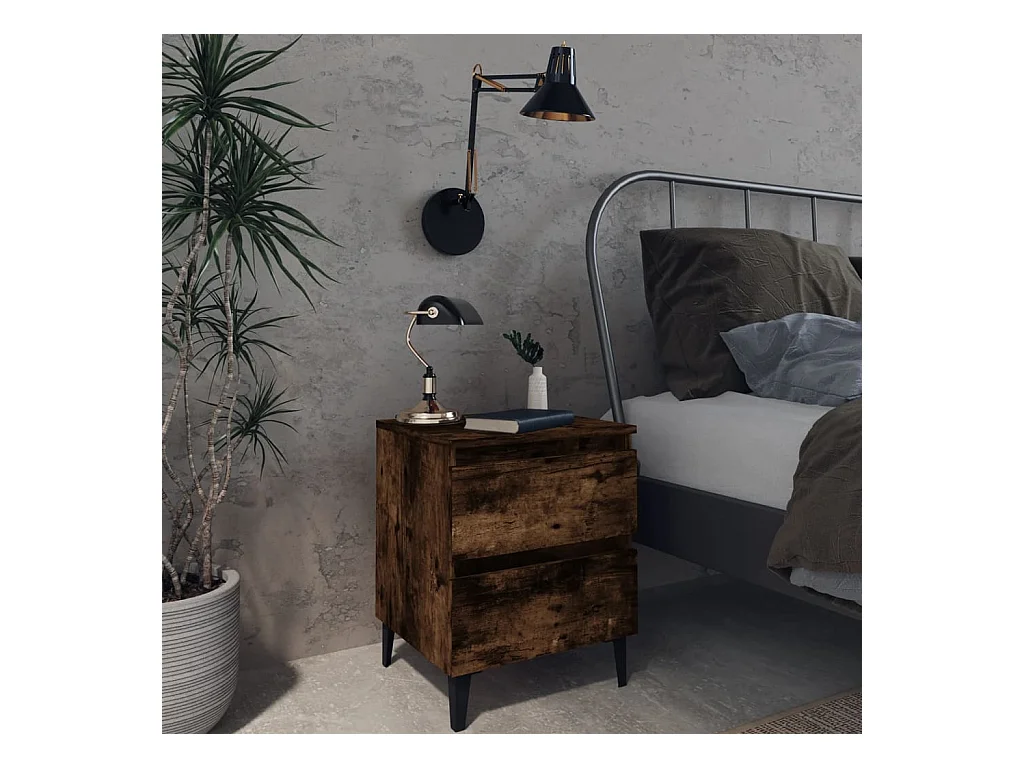 Orvieto Tables de chevet pieds en métal 2 pcs Chêne fumé 40x35x50 cm