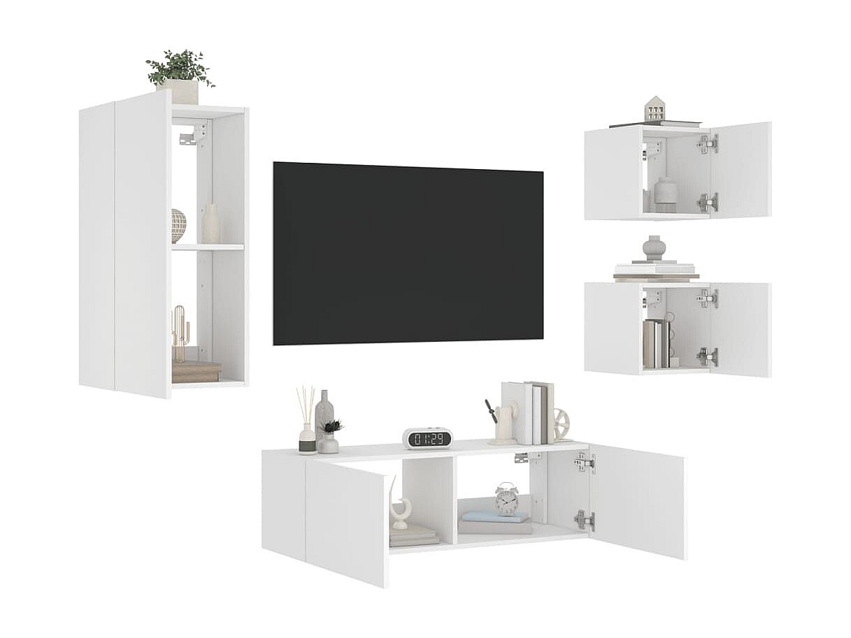 Osyra Meuble TV muraux 4 pcs avec lumières LED blanc