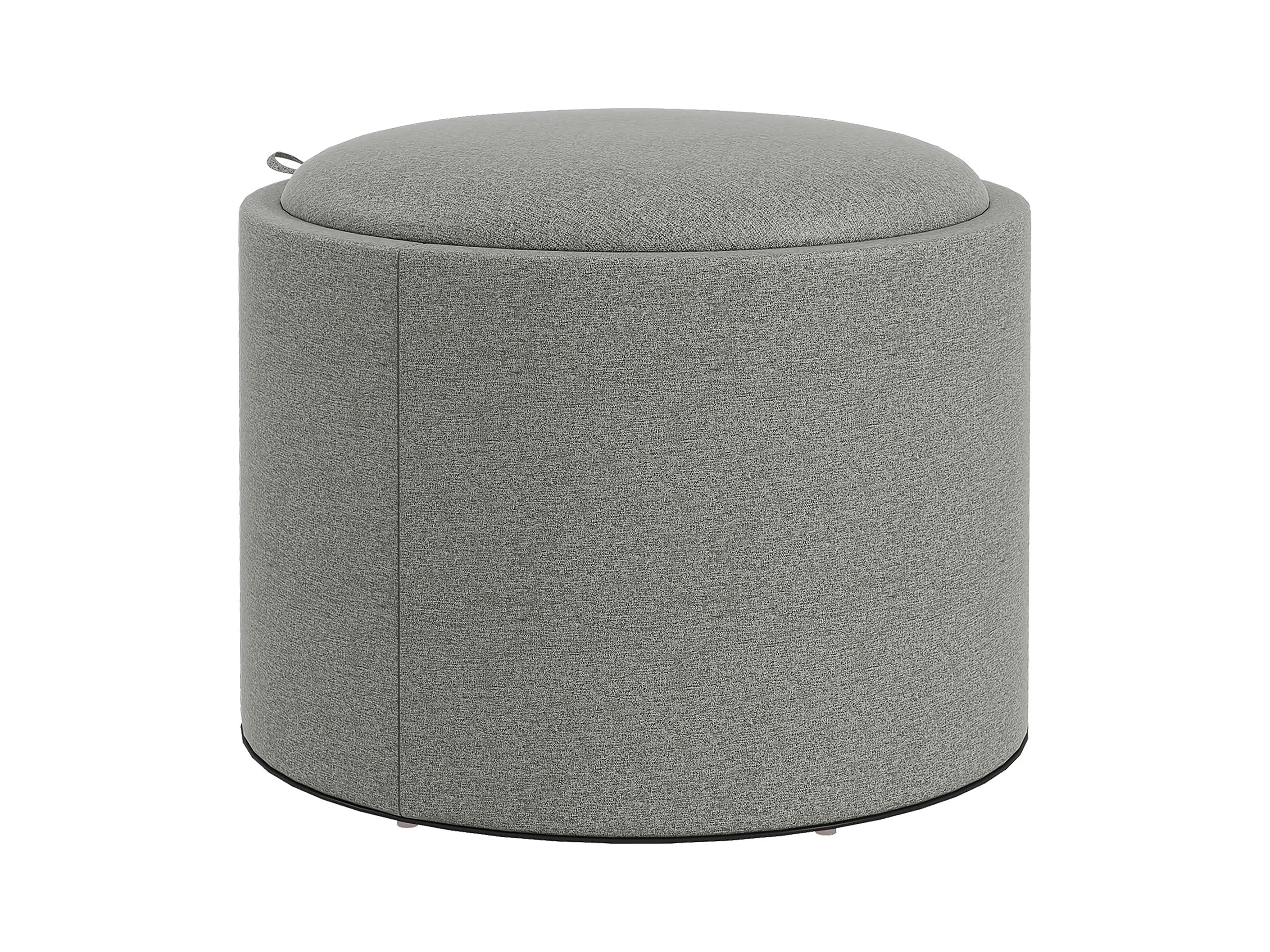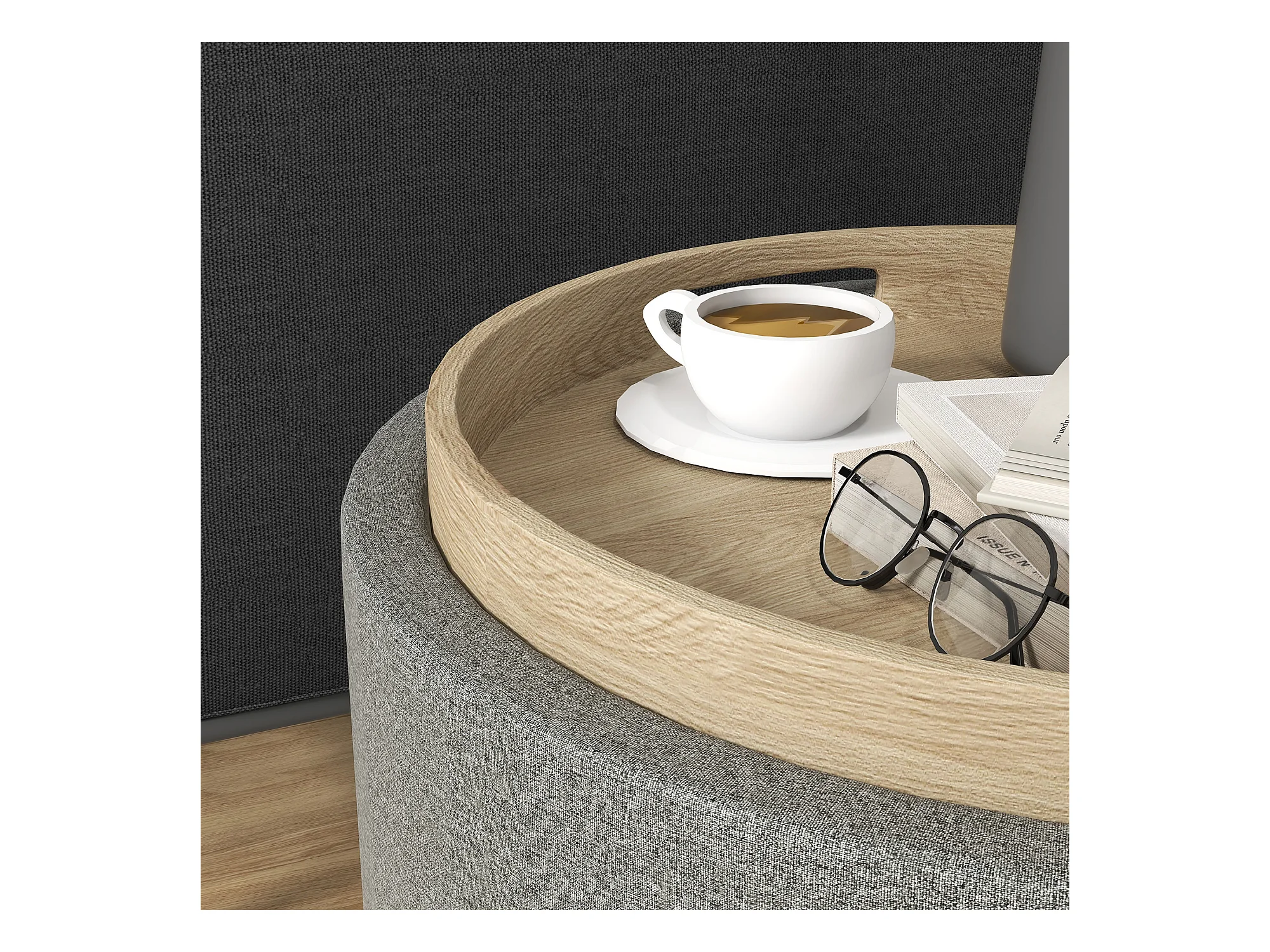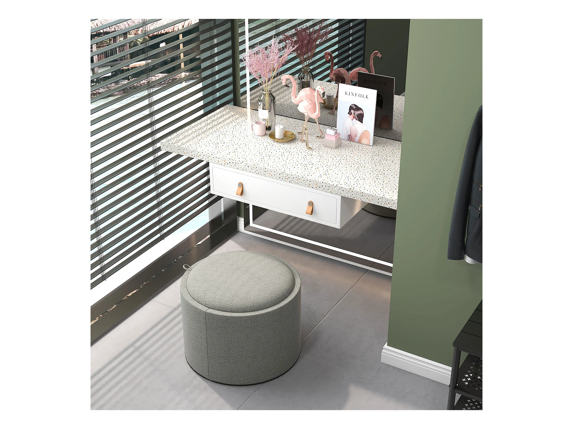 Ottomane ronde avec rangement et couvercle rabattable, tissu lin, gris (56x56x42 cm)