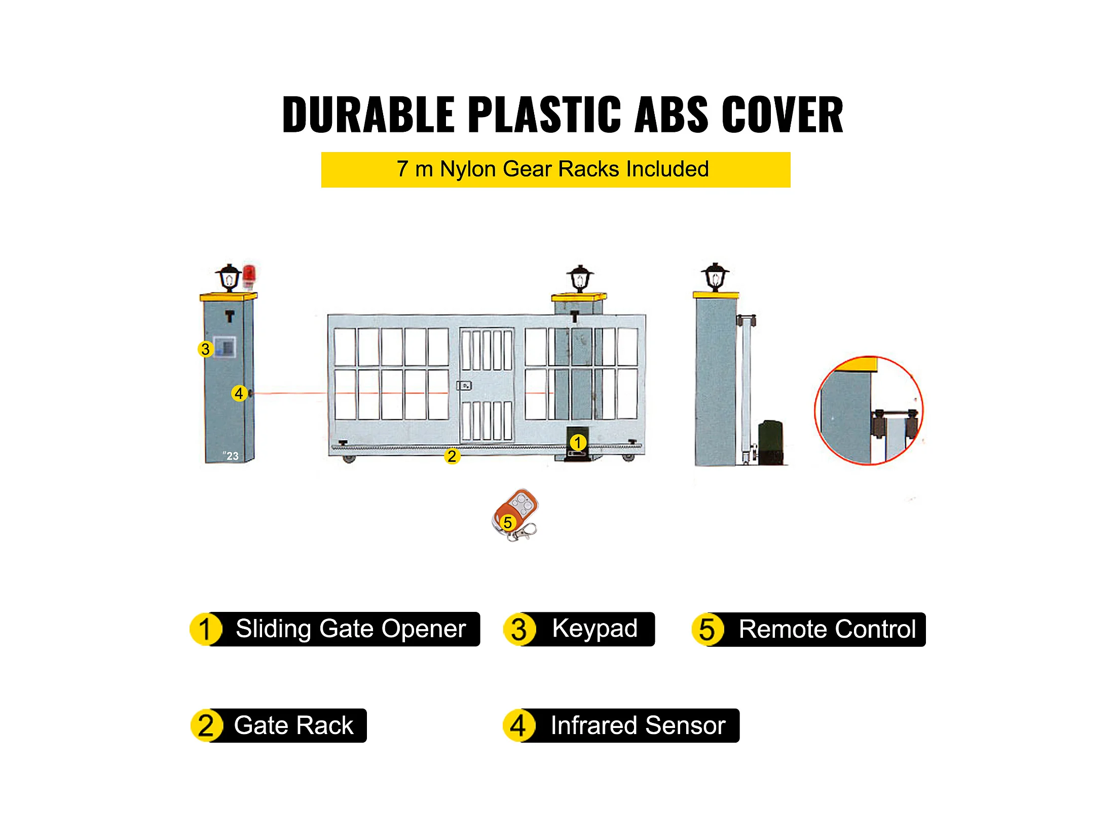 Ouvre-Porte Coulissant SucceBuy, Ouvre Portail Automatique 7 m avec 4 Télécommandes et Contrôle APP, Moteur de Portail Électrique pour Allée Roulante