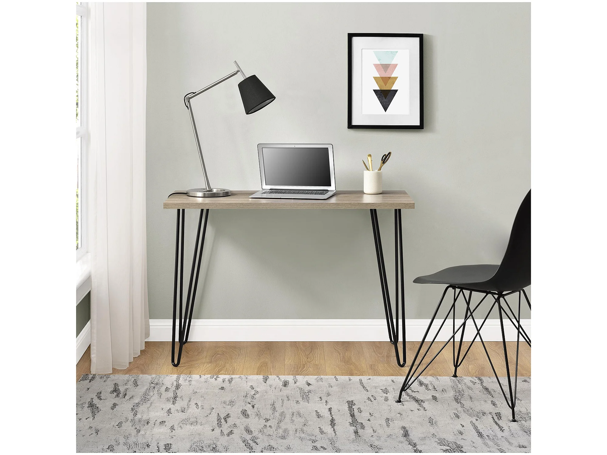 Owen | Bureau d'ordinateur en aspect chêne avec pieds en métal noir