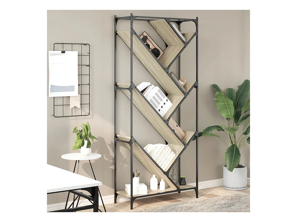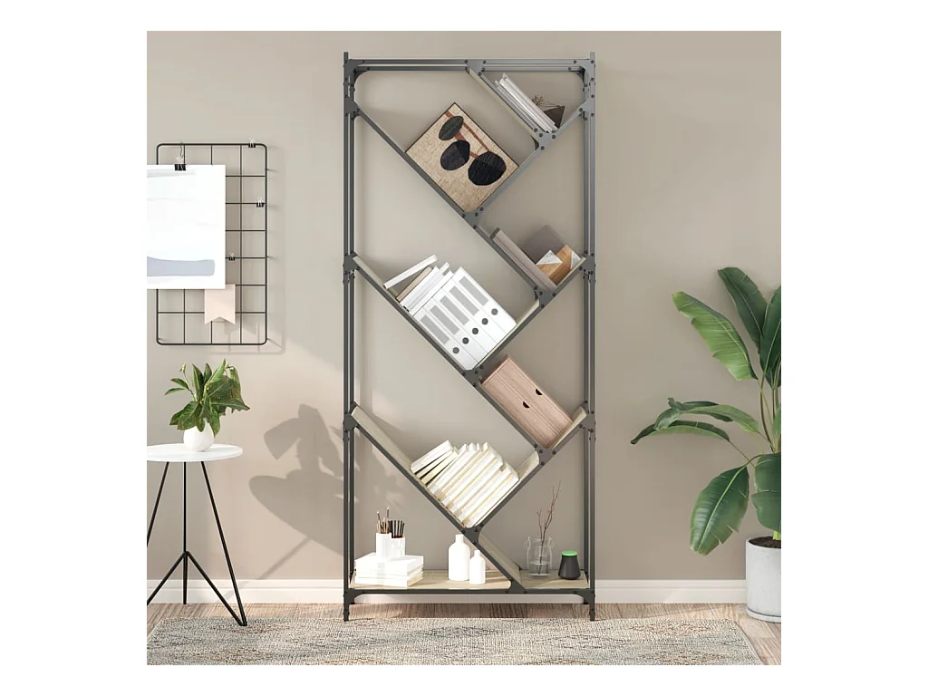 Øystine Bibliothèque chêne sonoma 79x30x180 cm bois ingénierie et métal