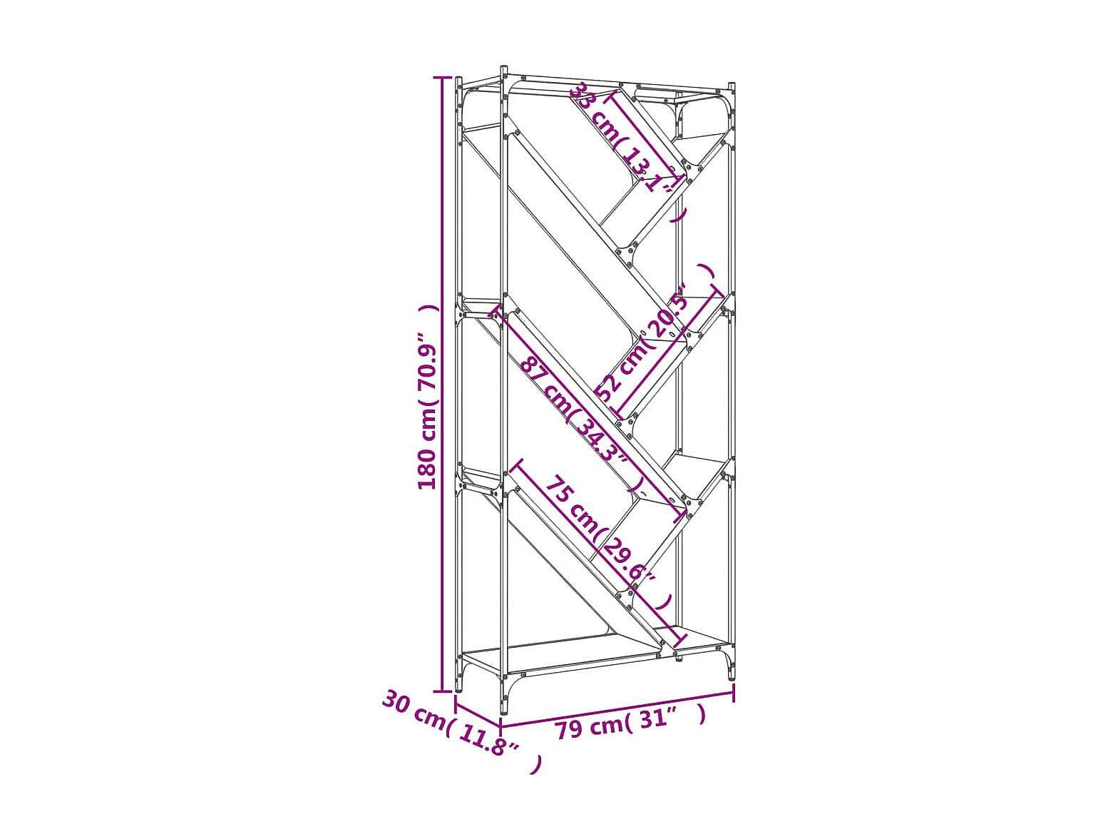 Øystine Bibliothèque noir 79x30x180 cm bois d'ingénierie et métal