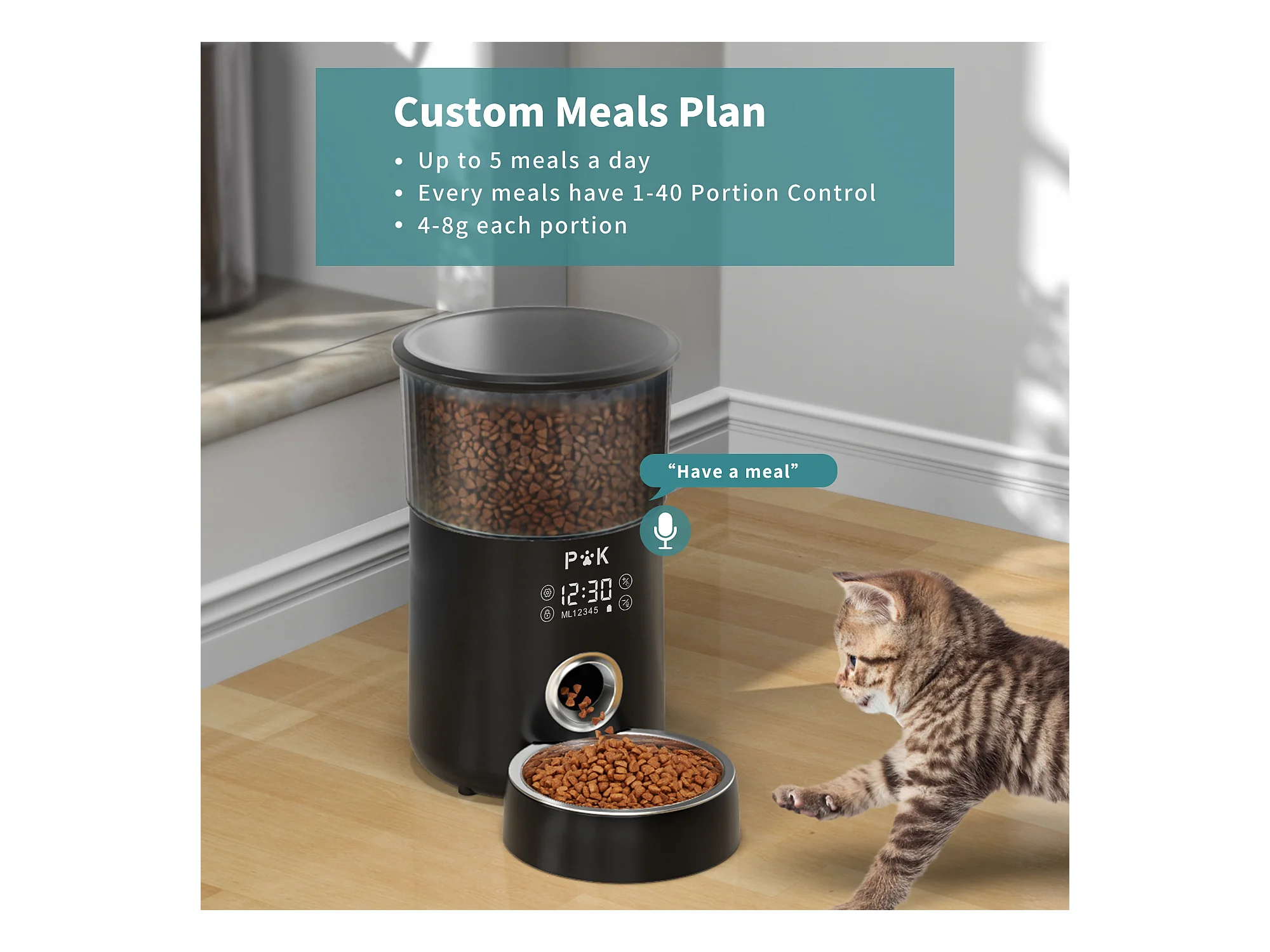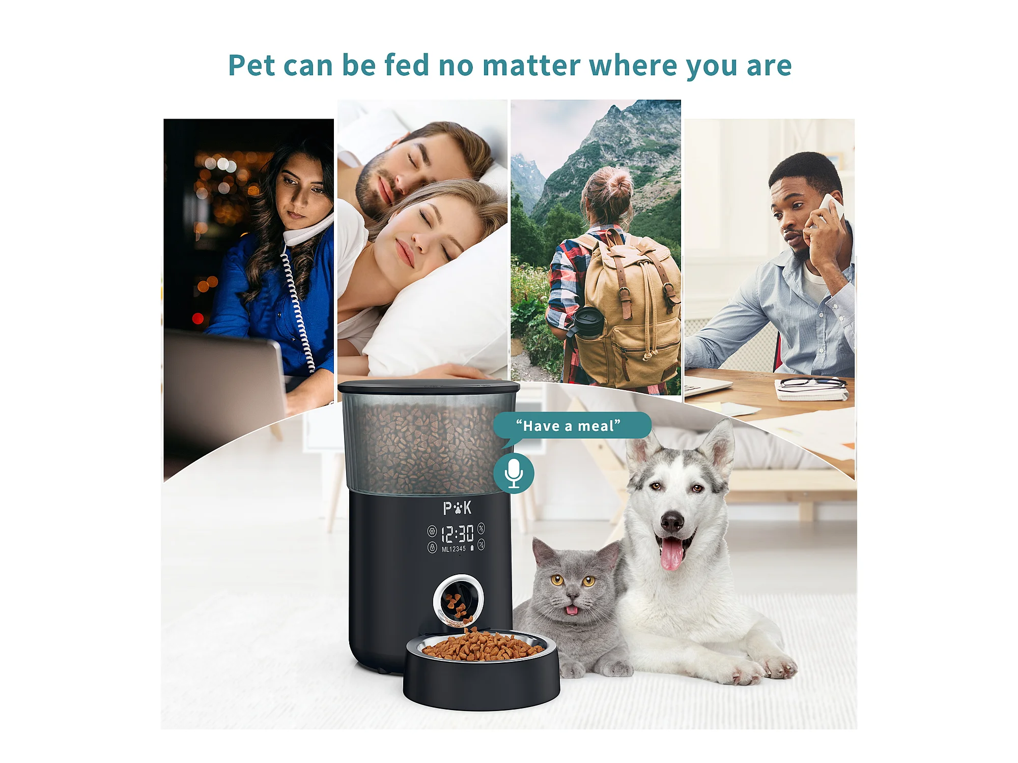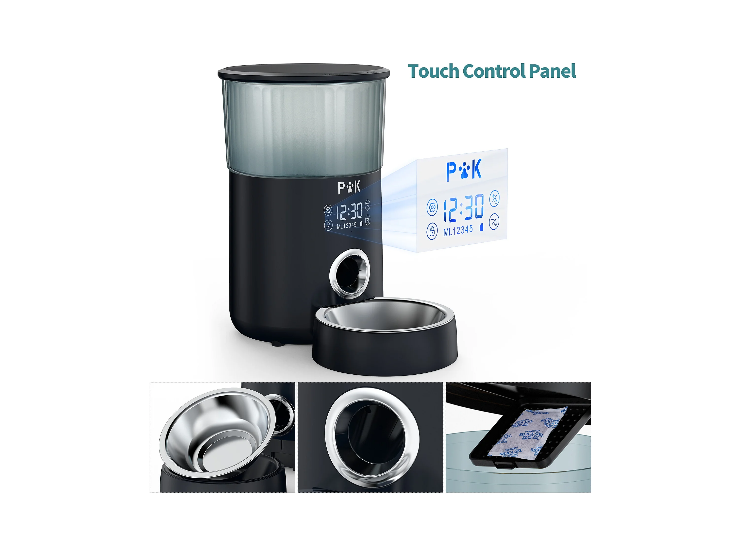 p&k LCD Distributeur Croquettes 4L Chats/Chiens Distributeur Automatique de Nourriture avec Bol en Inox Fonction d'enregistrement 5 Repas/Jour,Noir