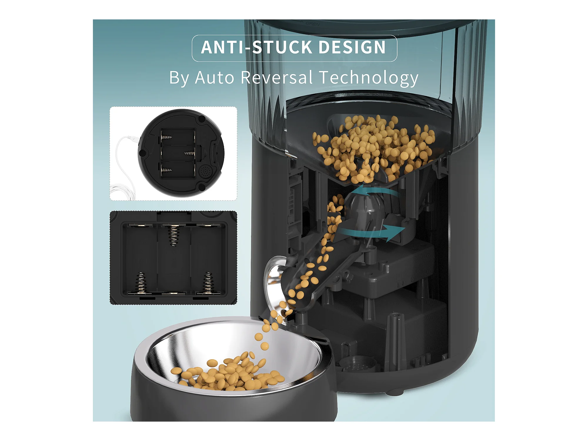 Balimo Dick 3L Distributeur Croquettes Chat Automatique,Minuterie Programmable/Fonction Enregistrement,avec Bol en Inox,Jusqu'à 6 Repas/Jour (Noir)