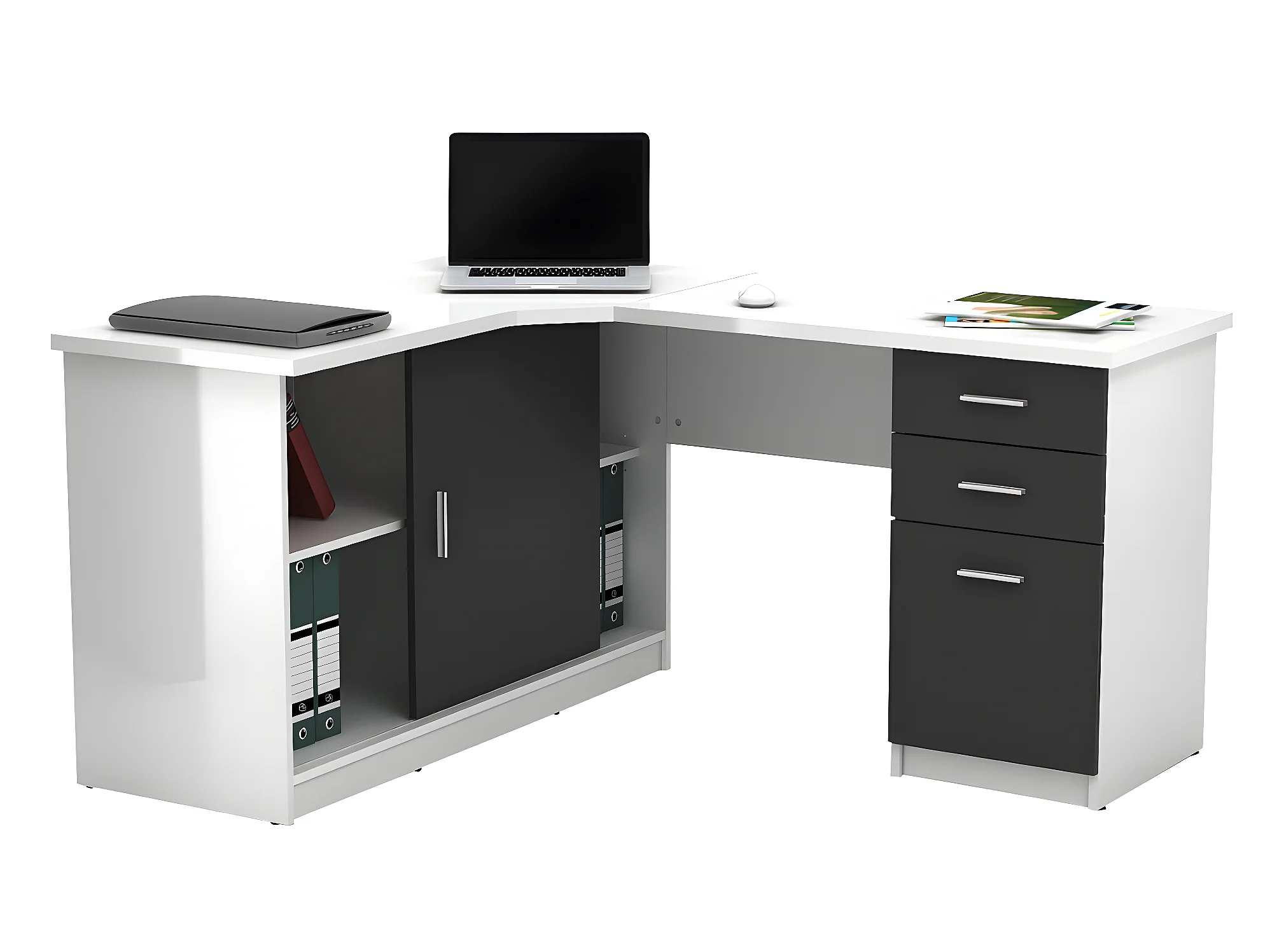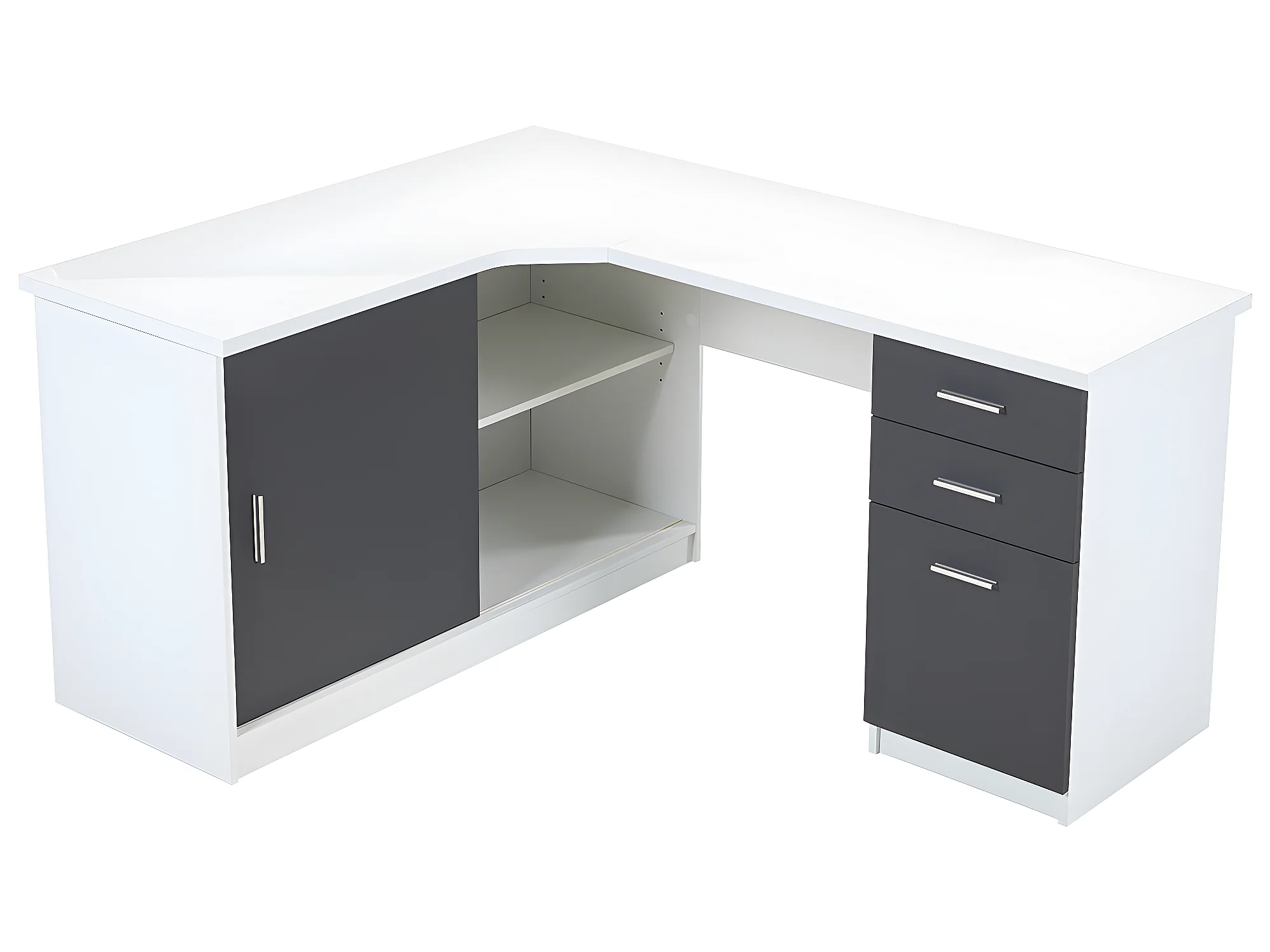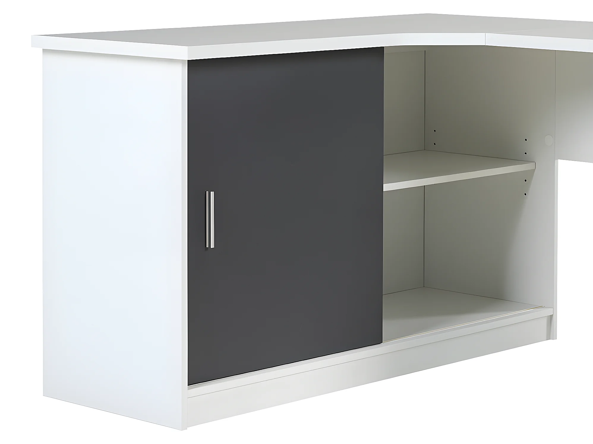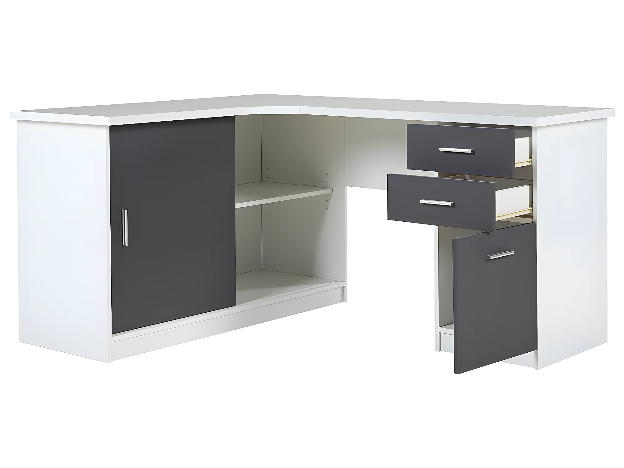Ensemble bureau d'angle - Blanc et gris + Chaise de bureau - NORWY