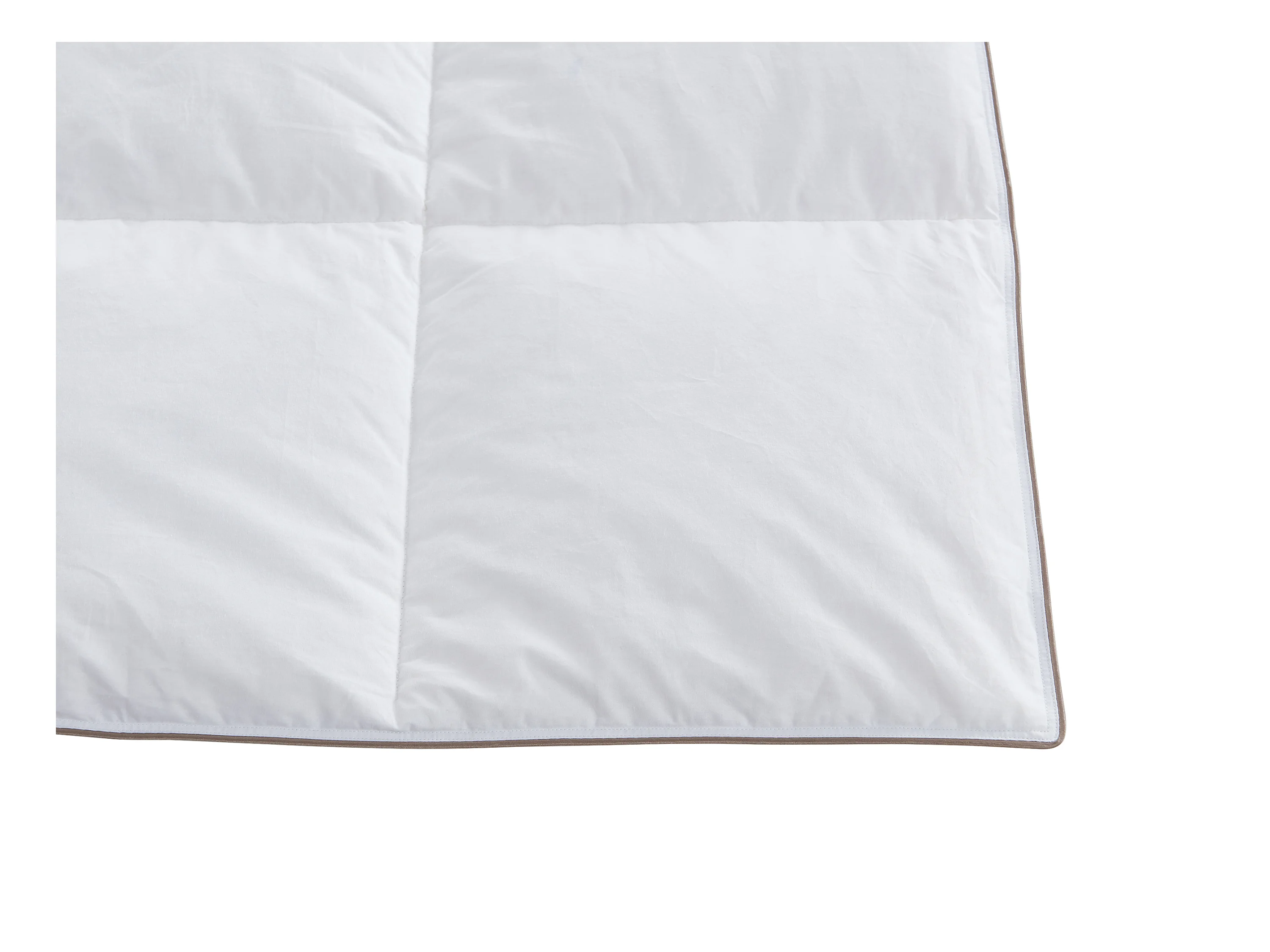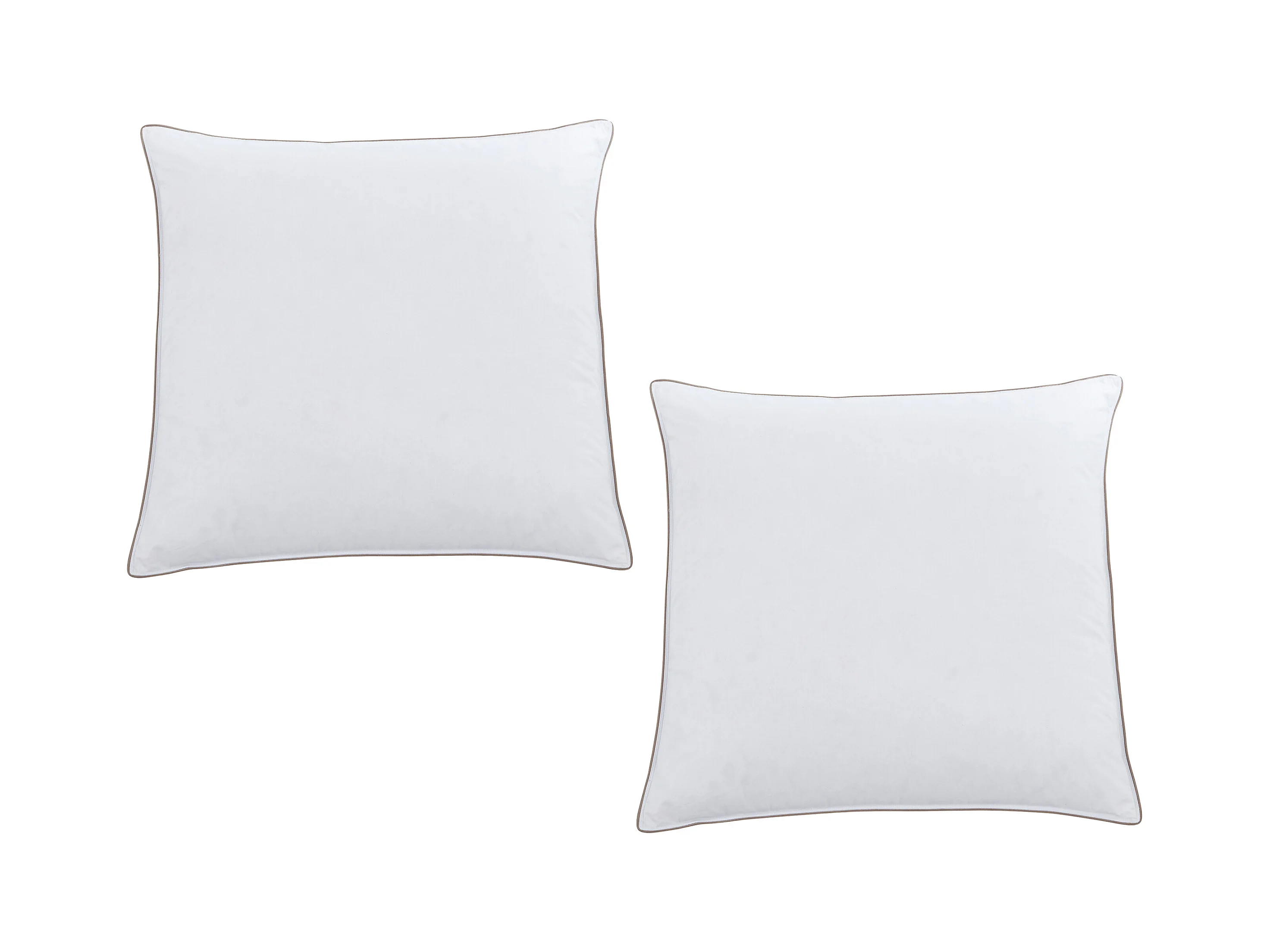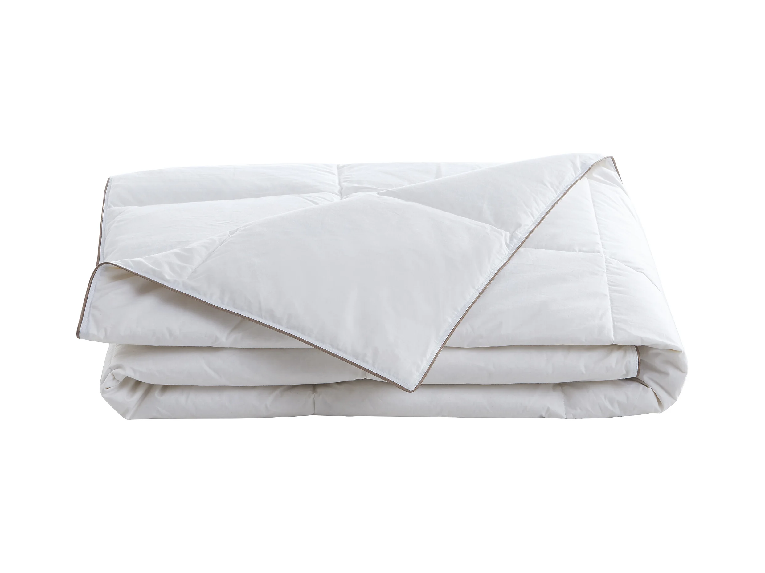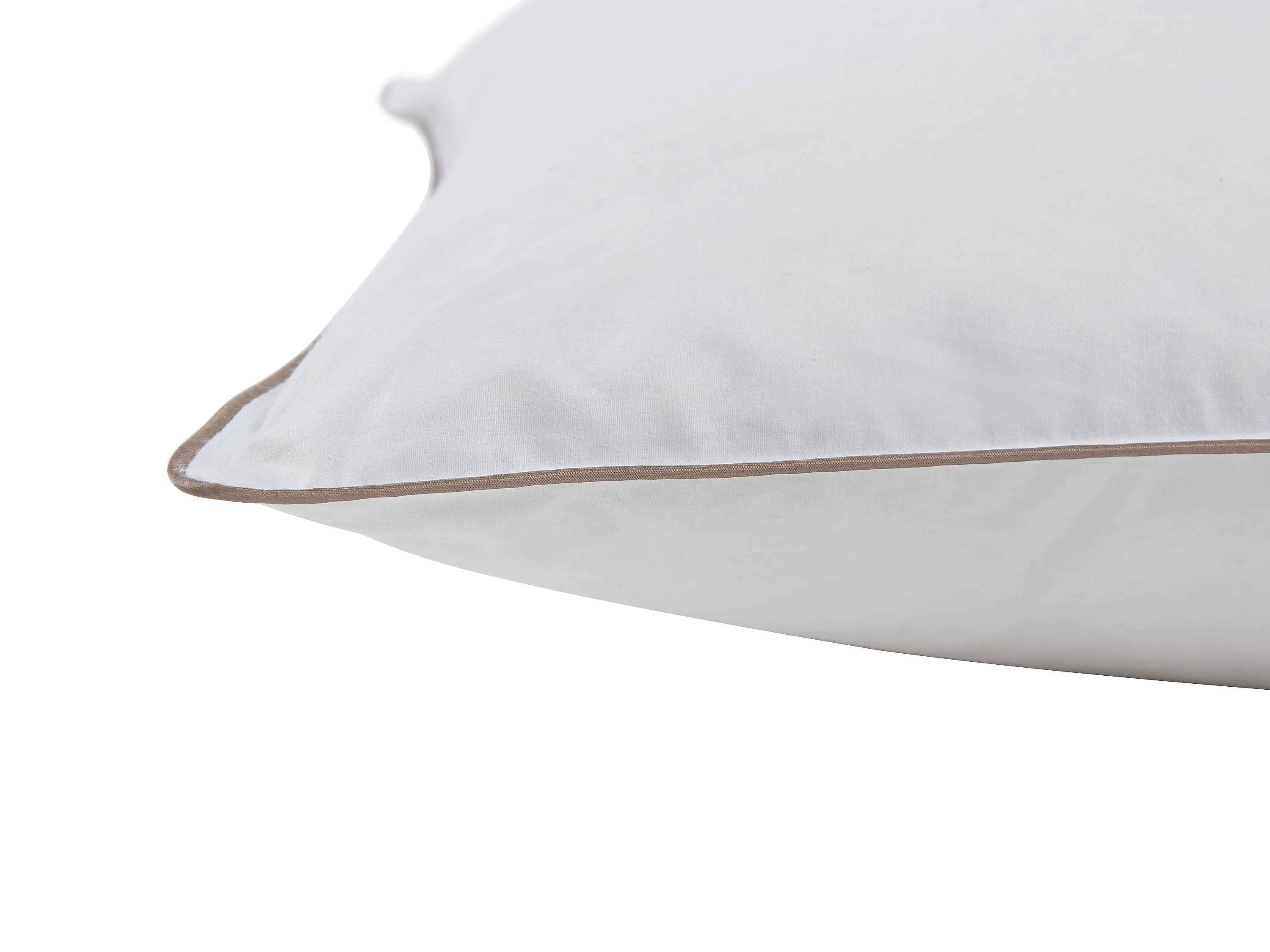 Pack couette 220 x 240 cm + 2 oreillers 65 x 65 cm anti-acariens enveloppe 100% percale et garnissage plumettes et duvet - Blanc passepoil taupe - FEATH de PALACIO