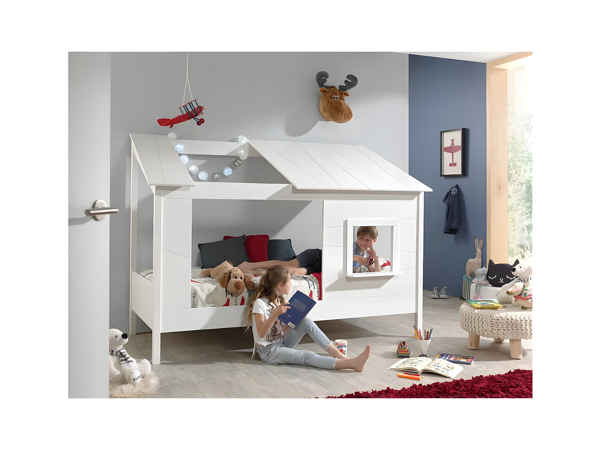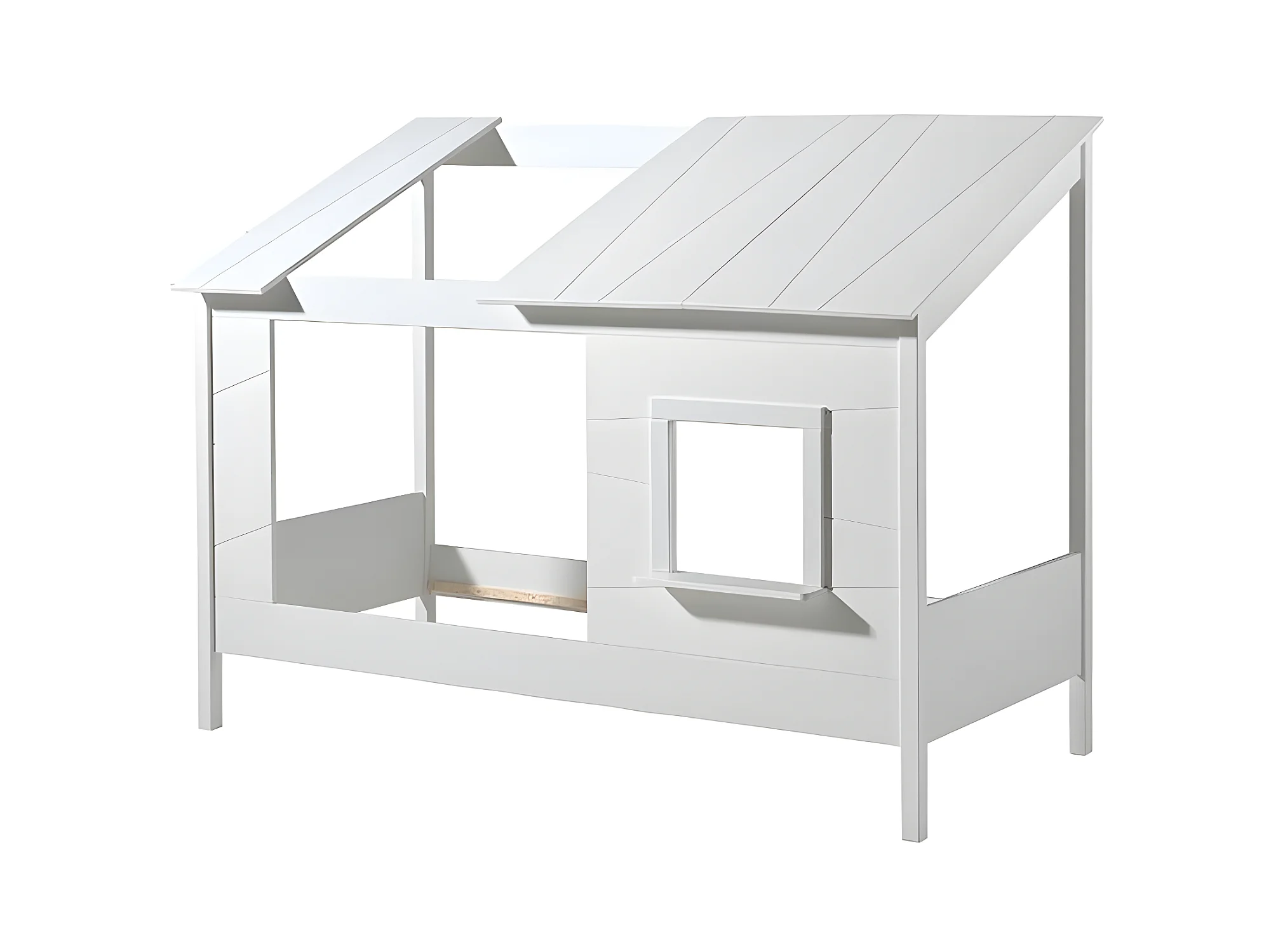 Pack - Lit Cabane Enfant, Sommier & Matelas "Housebed II" 90x200cm Blanc