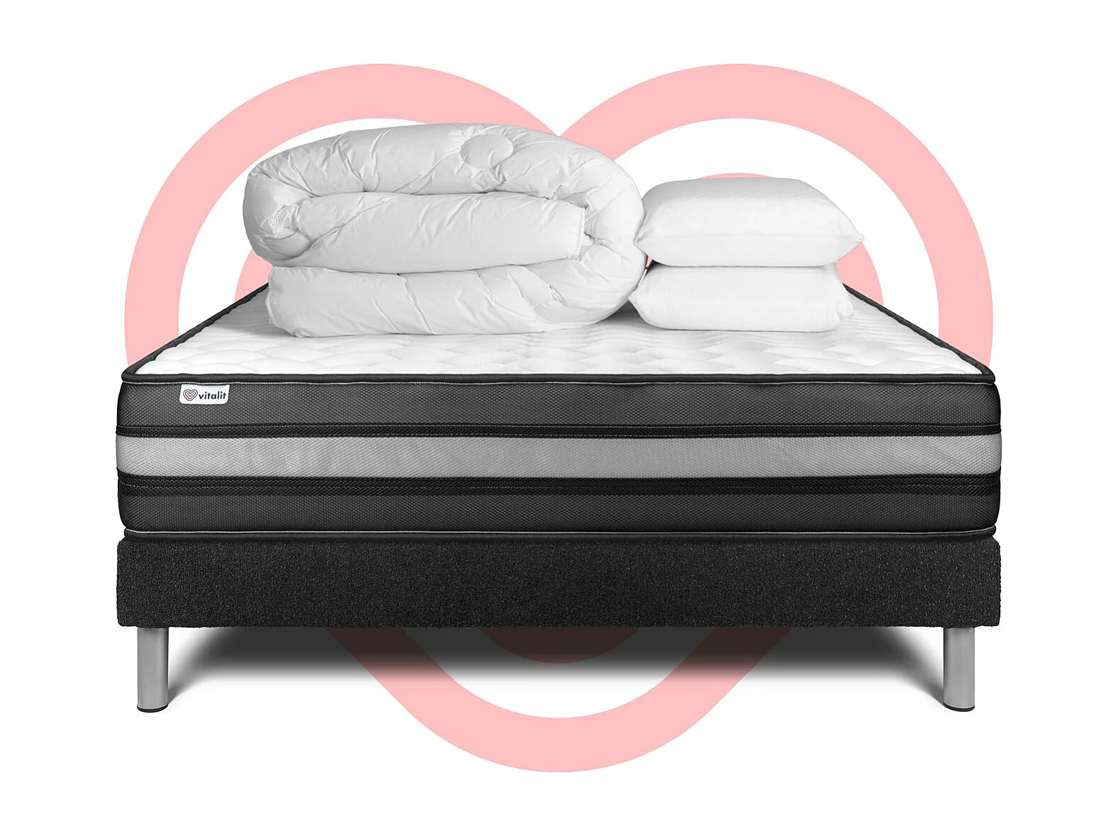 Pack lit complet - Matelas 140x190 cm + Sommier tapissier à lattes (en kit) + 2 oreillers + Couette - Vital Spa
