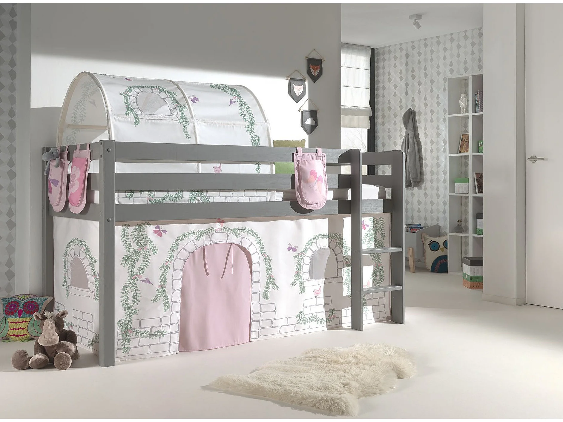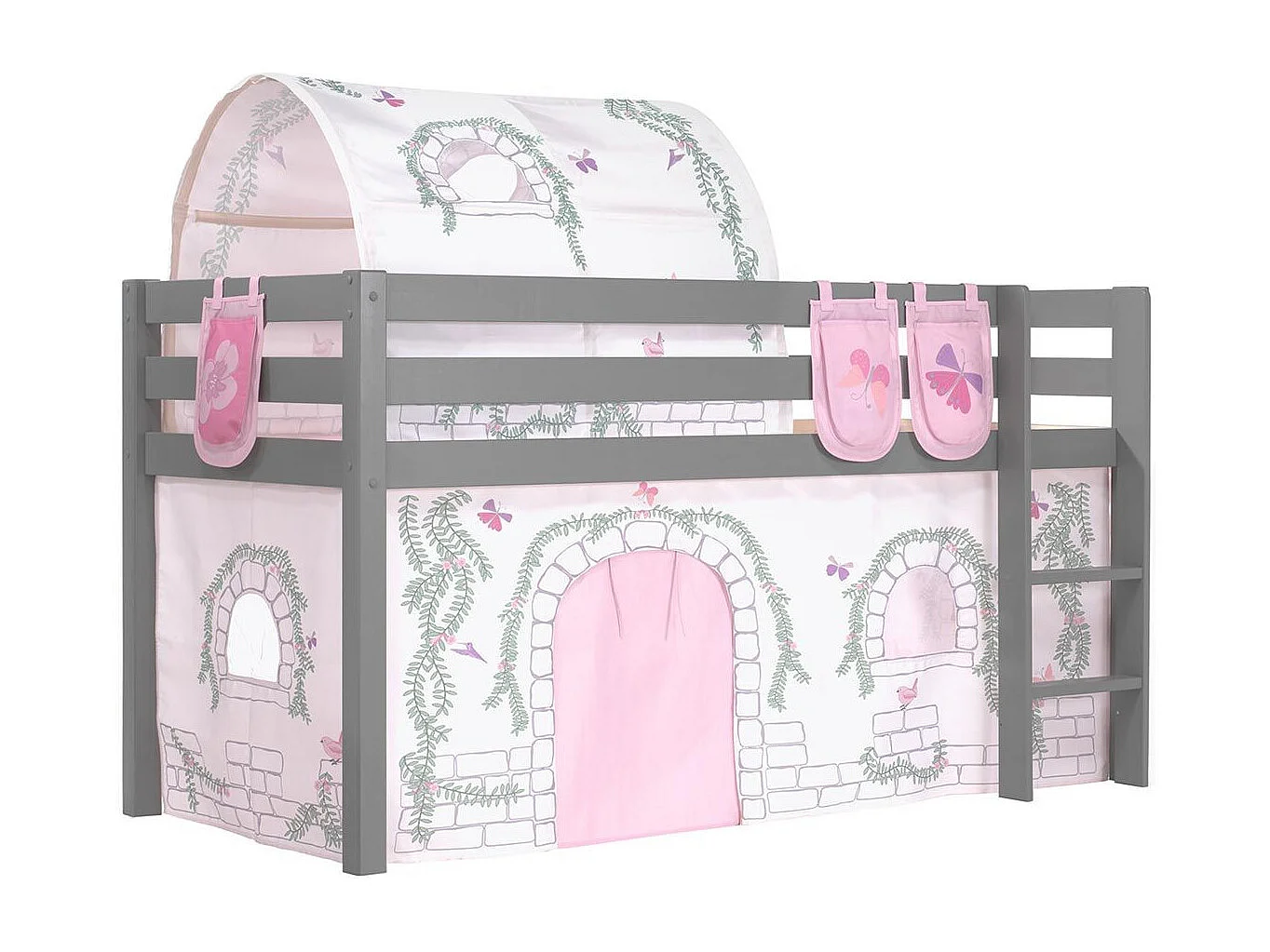 Pack - Lit Enfant Surélevé, Tente, 3 Pochettes & Tunnel "Pino Birdy" Gris