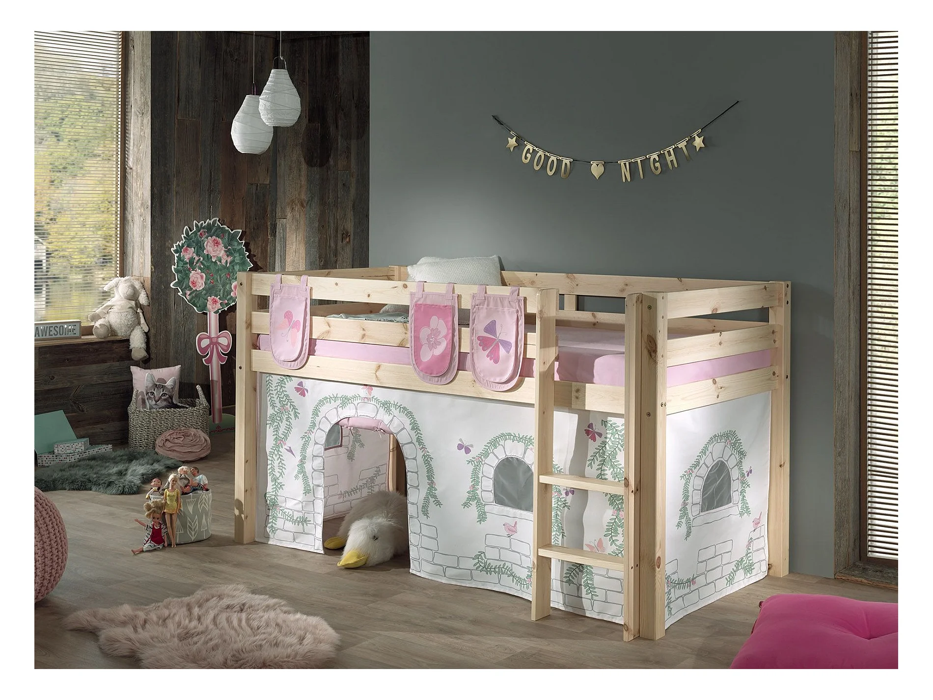 Pack - Lit Enfant, Tente & Tunnel "Pino Princesse" Naturel