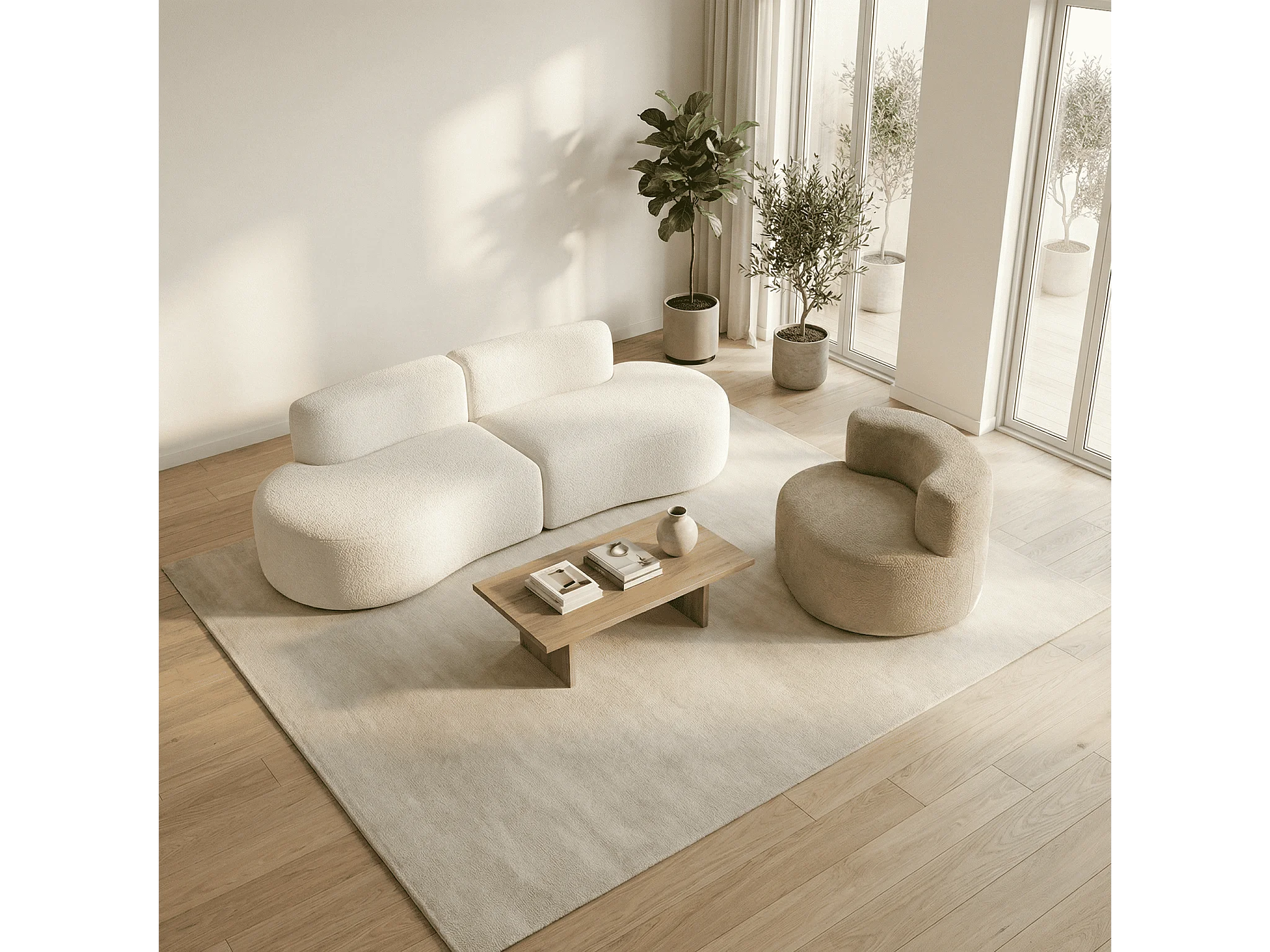 Coco Living Pack Lounge Canapé et fauteuil - blanc et sable