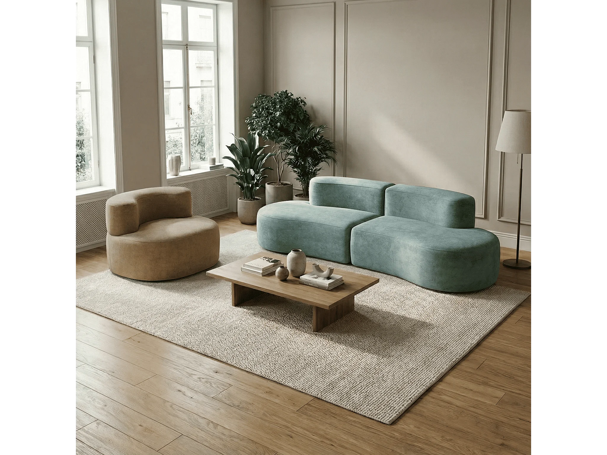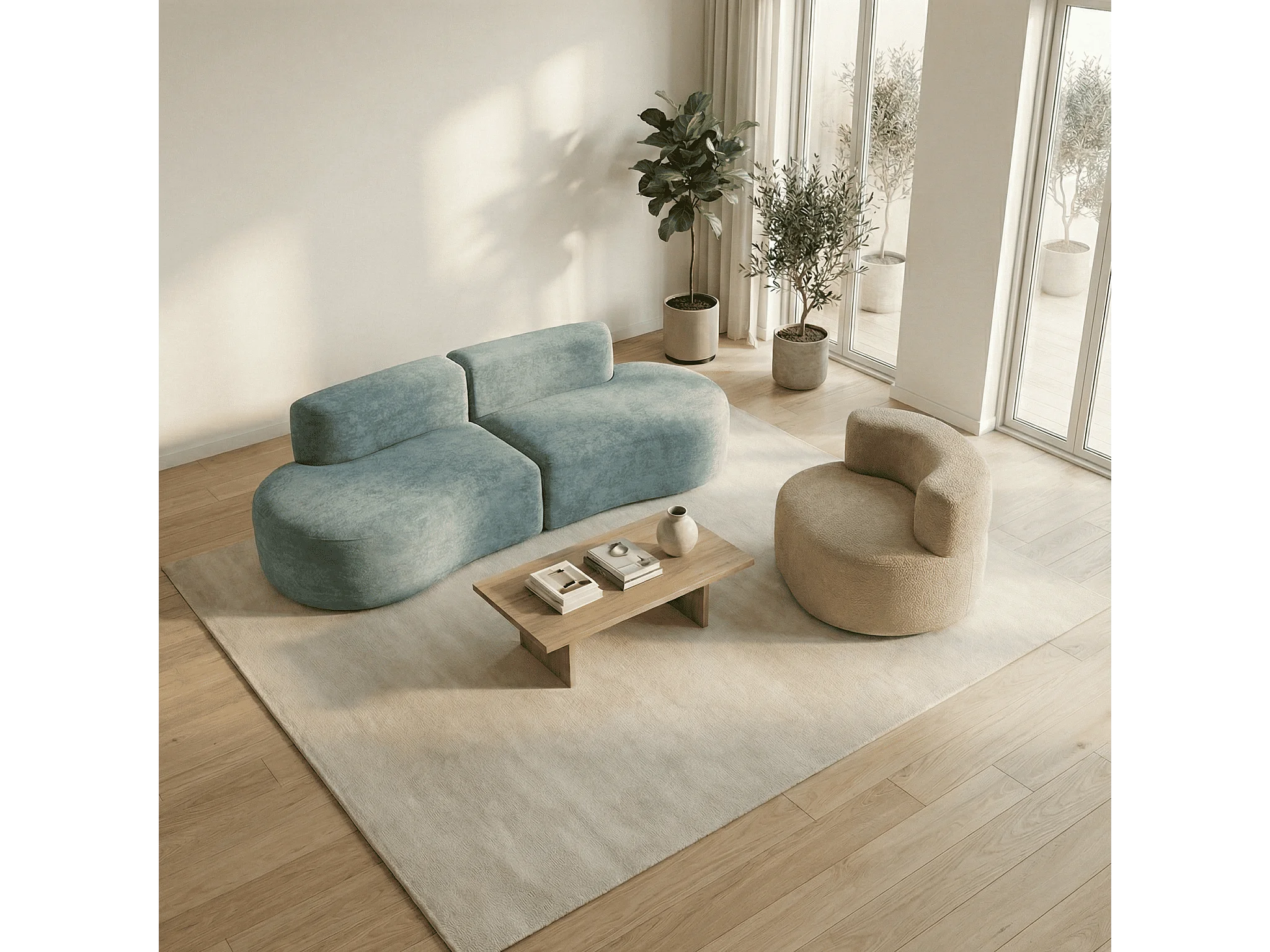 Coco Living Pack Lounge Canapé et fauteuil - sauge et sable