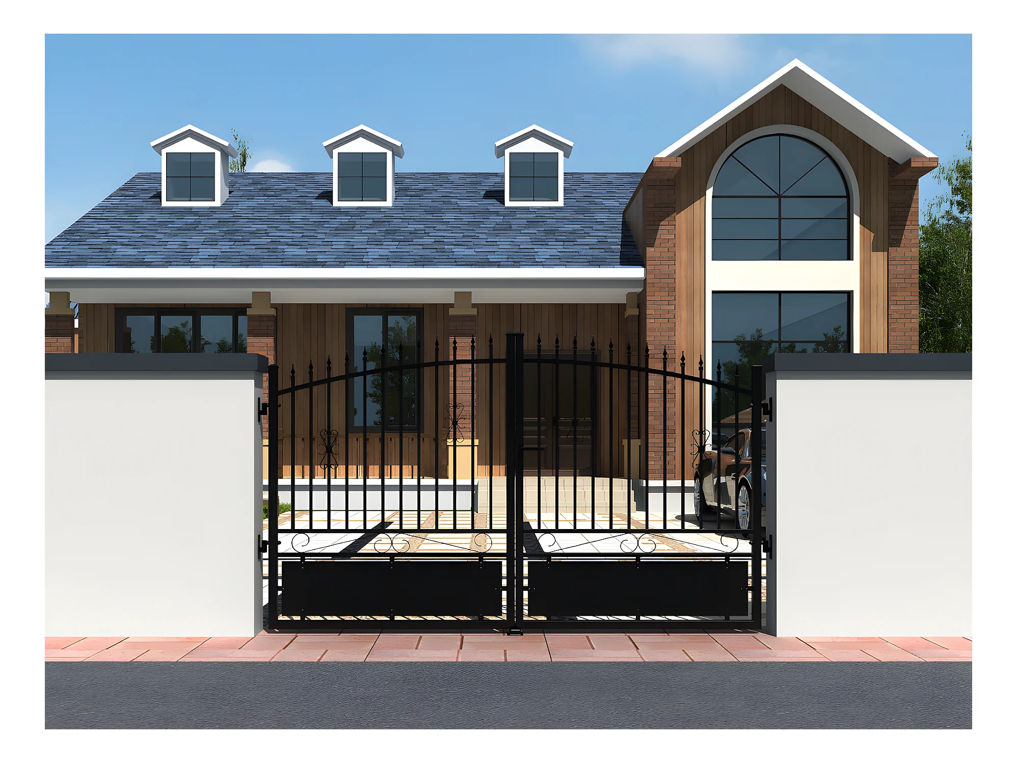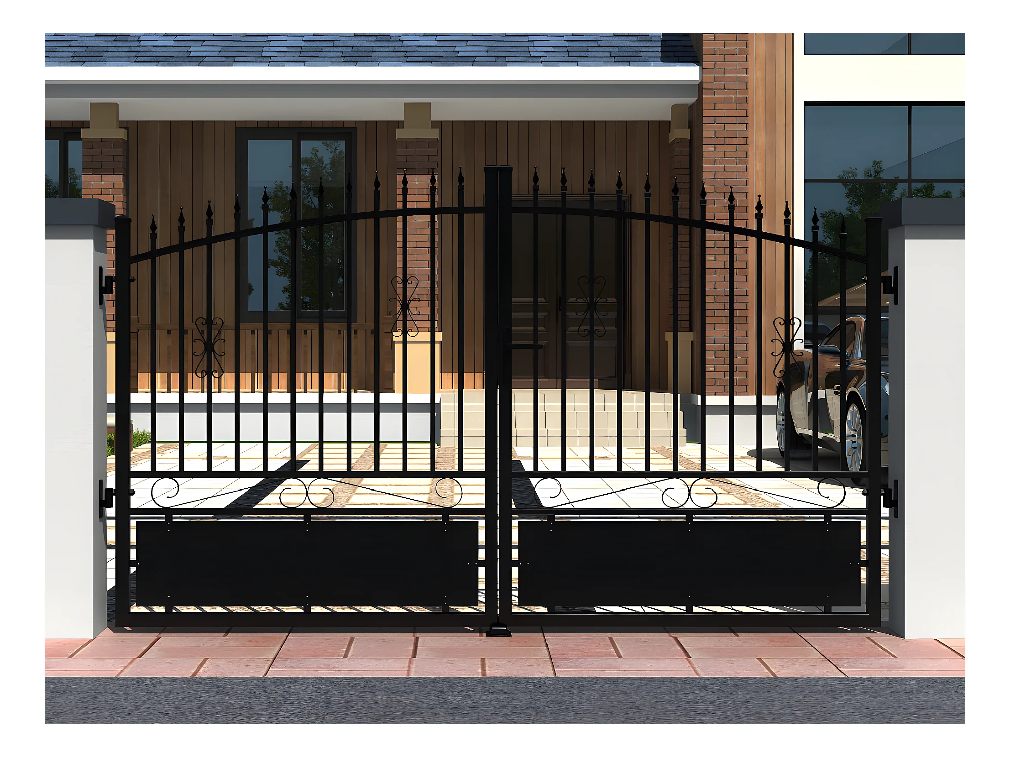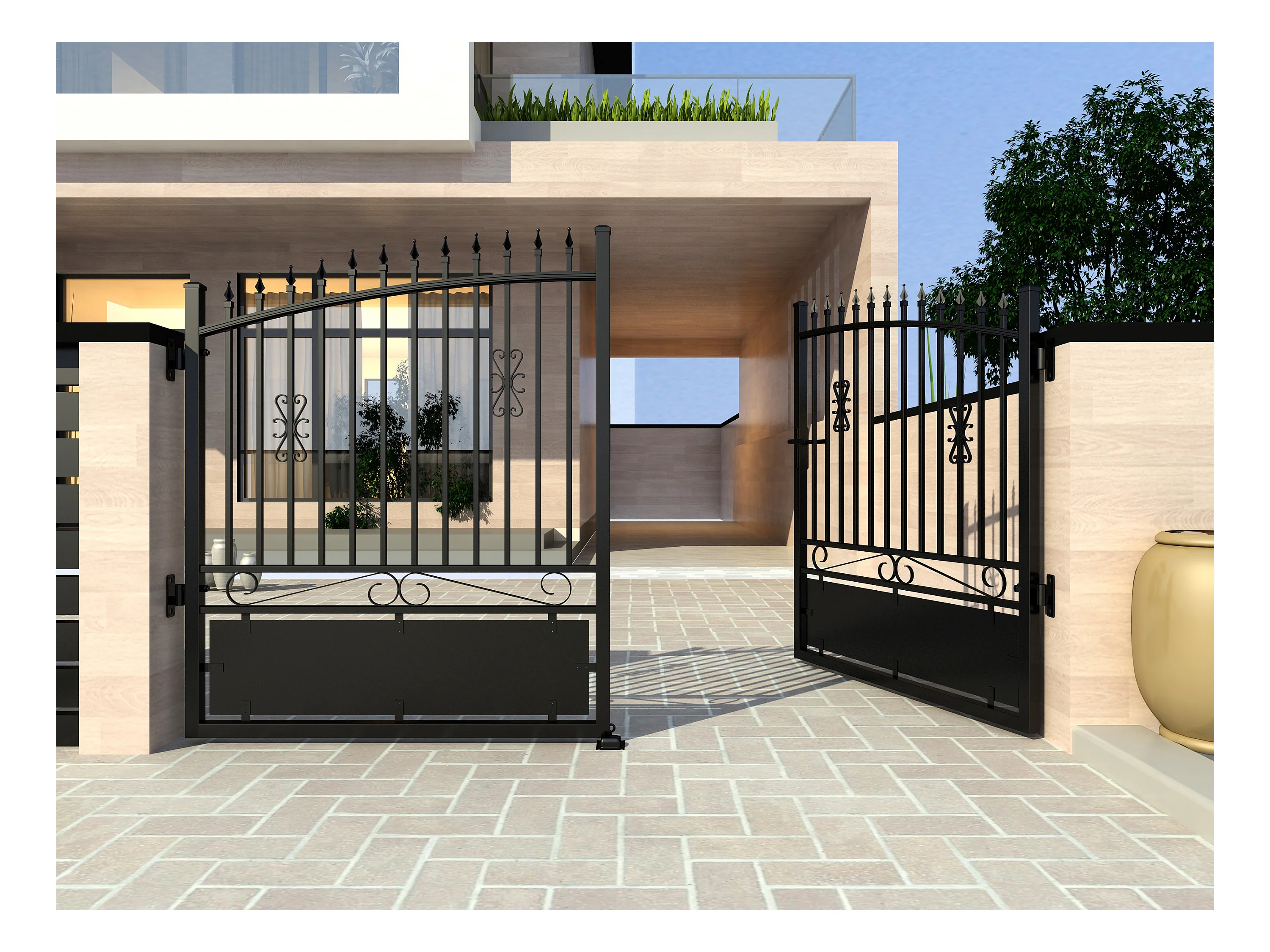 Portail battant éléctrique aluminium ajouré L317 x H183 cm noir NERBIS