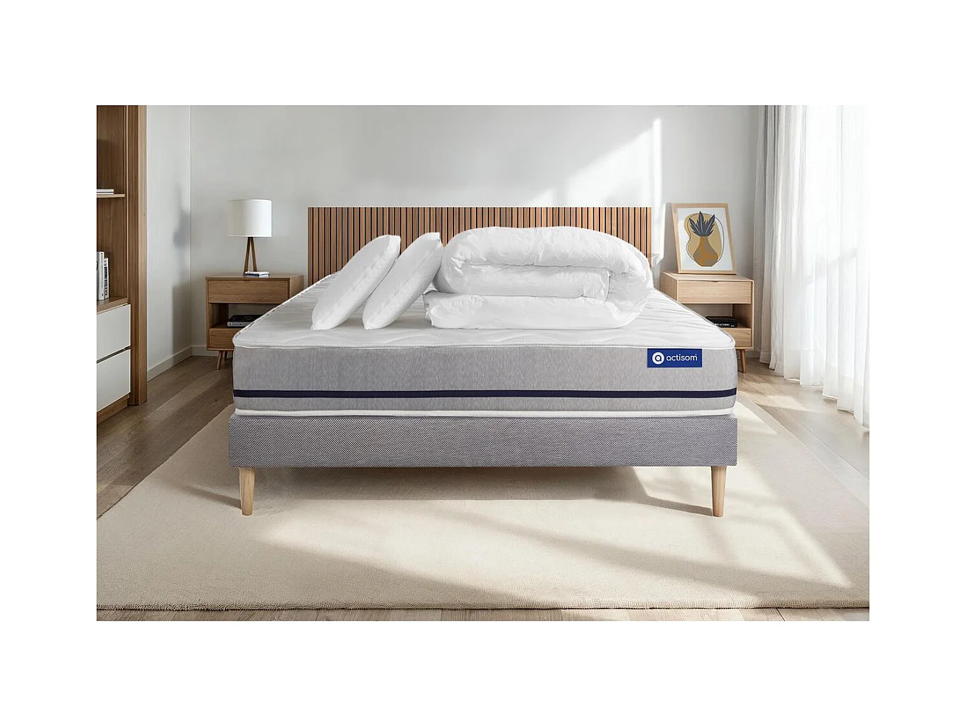 Pack prêt à dormir matelas Mémoire de forme ACTIMEMO SLEEP 140x200 5zones confort + sommier KIT gris + 2 oreillers + couette