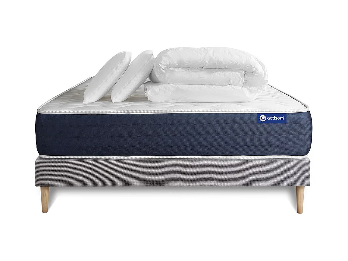 Pack prêt à dormir matelas Mémoire de forme ACTIMEMO SLEEP 140x190 5zones confort + sommier KIT gris + 2 oreillers + couette